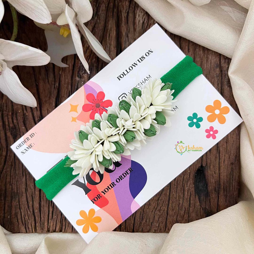 Embrace natural elegance with this captivating green and white jasmine flower baby headband, a sophisticated accessory that harmonizes botanical freshness with timeless floral beauty. Showcasing exquisitely detailed jasmine blooms in verdant green and pure white, this headband brings an air of cultivated grace to your little one's look. The thoughtfully designed construction provides a secure yet gentle fit, prioritizing comfort for sensitive skin throughout the day. Equally suited for milestone photographs, special occasions, or everyday wear, this versatile accessory seamlessly complements any ensemble with serene charm. An exceptional selection for parents who value the natural allure of jasmine florals and exceptional quality in their child's accessories.