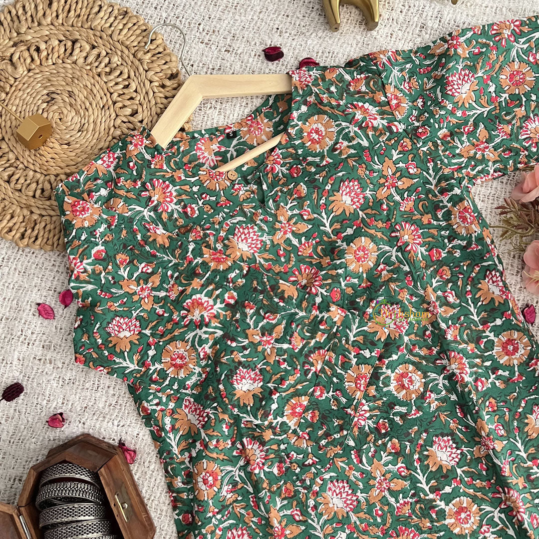 Introducing Vriksham Green with White Handblock Cotton Short Kurti, the perfect blend of style and comfort. Made with 100% cotton and handblock printing, this elegant 3/4 sleeve kurti is suitable for both daily wear and office wear. Elevate your wardrobe with this luxurious piece and make a statement wherever you go.
