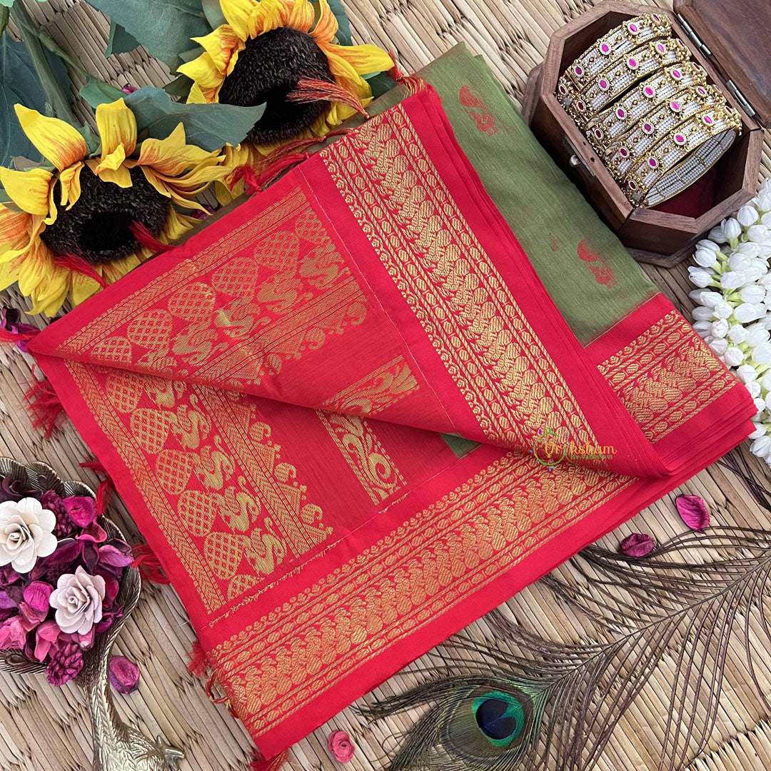 Elevate your ethnic wardrobe with this exquisite Kalyani cotton saree, featuring a striking green and red border complemented by intricate butta detailing. Crafted from premium Kalyani cotton, this saree offers exceptional breathability and comfort for all-day wear. The traditional butta design adds timeless elegance, while the contrasting border creates a sophisticated visual appeal. Perfect for festivals, celebrations, or everyday occasions, this versatile piece seamlessly transitions from casual to formal settings. The natural fabric ensures durability and easy maintenance, making it an investment piece for the discerning wearer. Embrace authentic Indian craftsmanship with this beautifully designed saree.