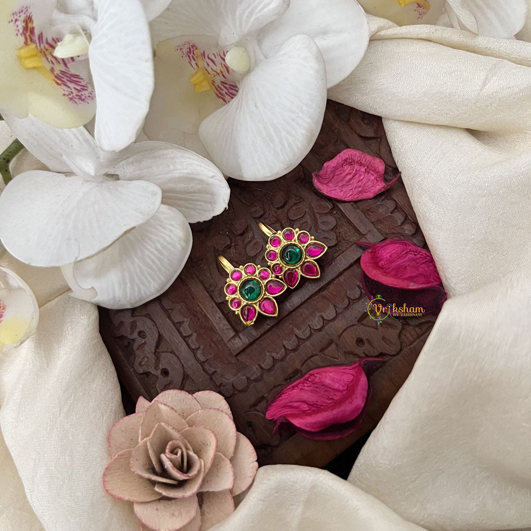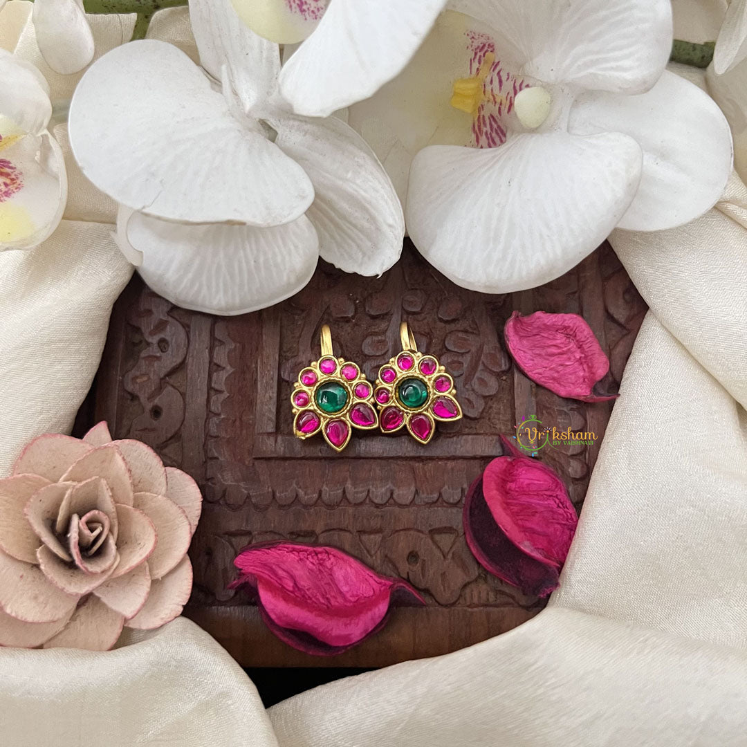 The Vriksham Gul-Mor Pair Kundan Jadau Press Bugadi features an elegant design inspired by the harmonious pairing of flowers and peacocks, rendered in vibrant red and green tones. This sophisticated piece showcases exquisite Kundan craftsmanship, making it a refined accessory that enhances traditional attire with cultural depth and timeless beauty.