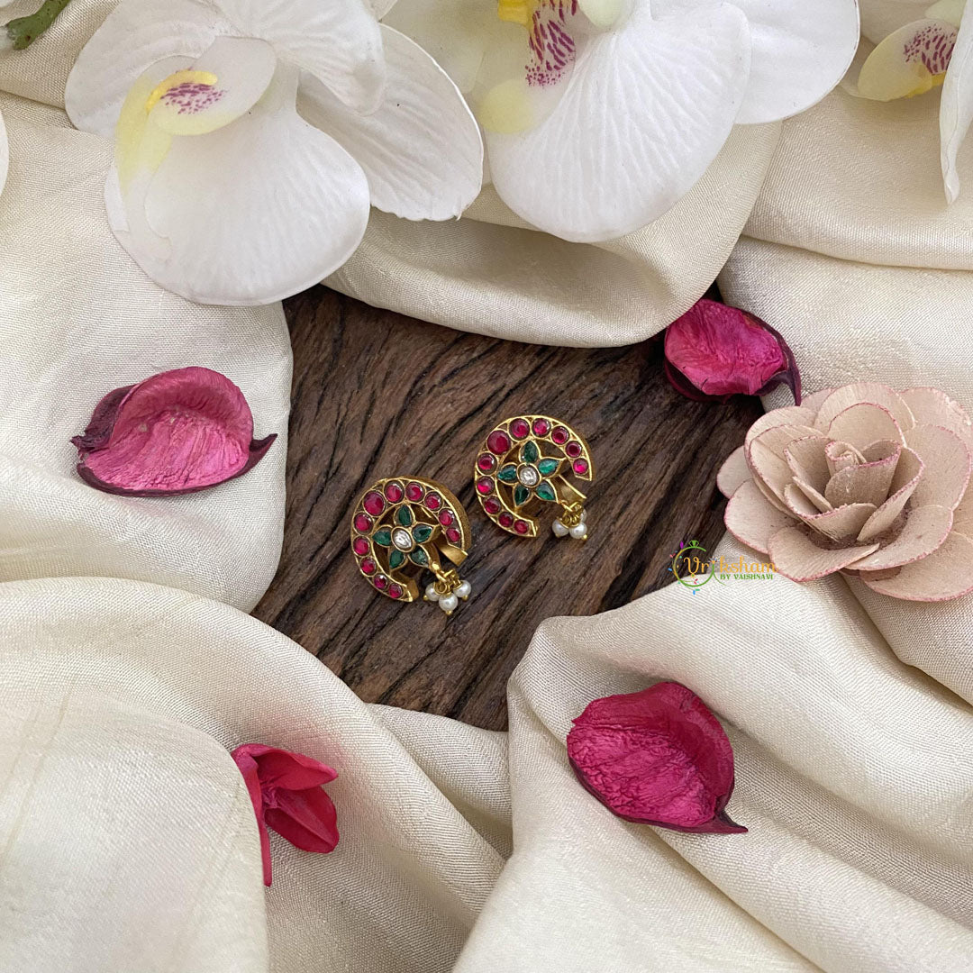 Embrace the bold elegance of the Vriksham Half Moon Maharashtrian Style Press Bugadi-Red Green. Handcrafted with intricate details, the iconic design boasts a luxurious touch that will elevate any ensemble. Add a touch of Maharashtrian culture to your style with this statement piece.
