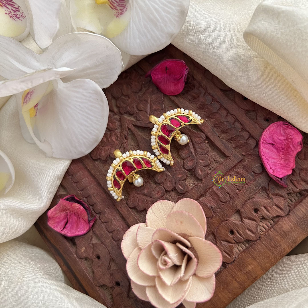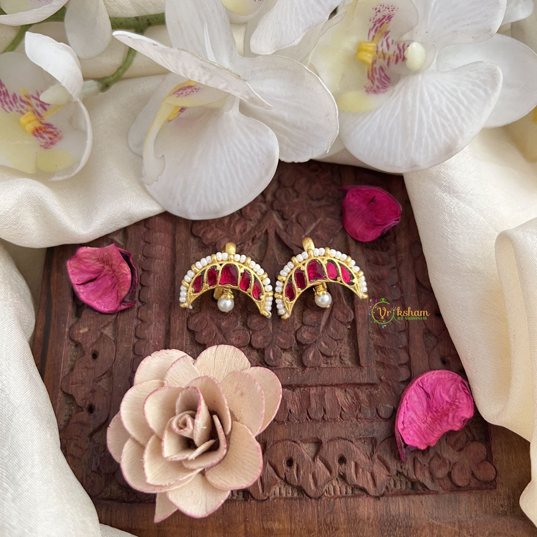 Introducing the Vriksham Half Moon Maharashtrian Style Press Bugadi-Red, crafted with exquisite attention to detail and inspired by traditional Maharashtrian designs. Made to add a touch of elegance and allure to any outfit, this unique piece is a must-have for those seeking sophistication and luxury.