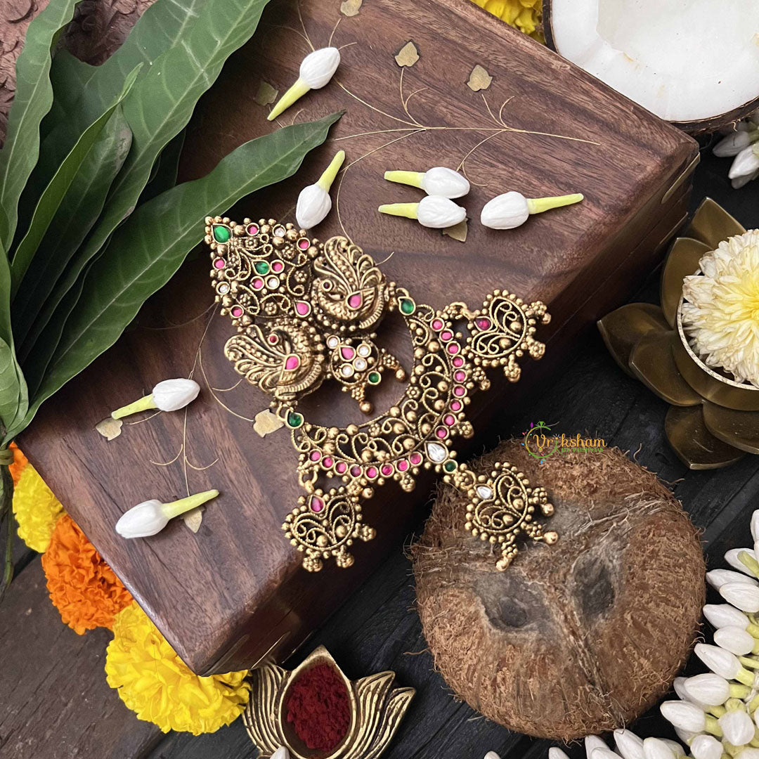 The Vriksham Half Moon With Peacock Design 1 Gram Gold Jad Billai combines elegant half-moon shapes with intricate peacock motifs in a refined 1 gram gold finish. This sophisticated accessory enhances bridal hairstyles with a delicate balance of tradition and grace, offering lightweight comfort and timeless beauty for your special occasion.