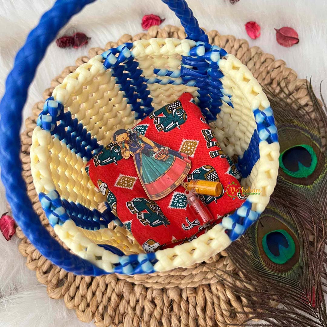 Celebrate timeless elegance with this exquisitely handmade basket bag showcasing a serene blue and cream plastic wire construction paired with an artisanal woven handle. The harmonious color combination evokes refined tranquility while the woven handle detail adds dimensional texture and authentic craftsmanship character. Crafted from durable plastic wire materials, this basket combines aesthetic appeal with exceptional structural integrity and longevity. The generously proportioned design accommodates your essentials with ease, from shopping expeditions to daily necessities, while preserving an air of cultivated grace. The distinctive woven handle construction and meticulous handmade details reflect superior artisanal quality and dedicated craftsmanship. Ideal for the discerning individual who appreciates authentic heritage creation, this basket bag transcends conventional accessories to become a treasured companion that celebrates artisanal excellence with enduring style and timeless, distinctive sophistication.