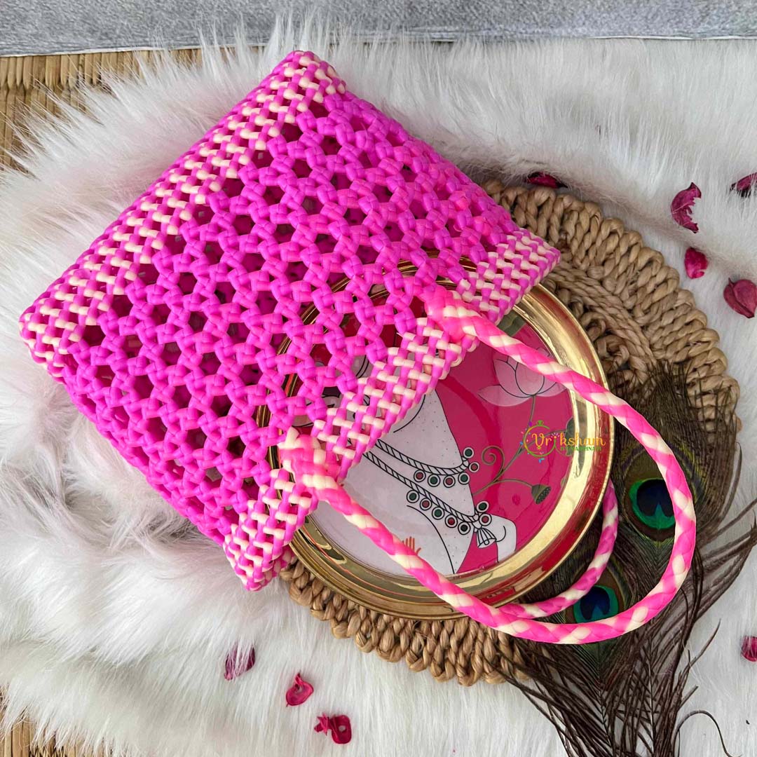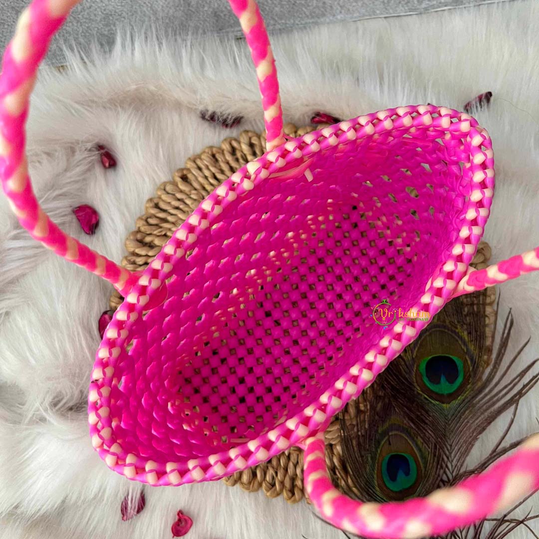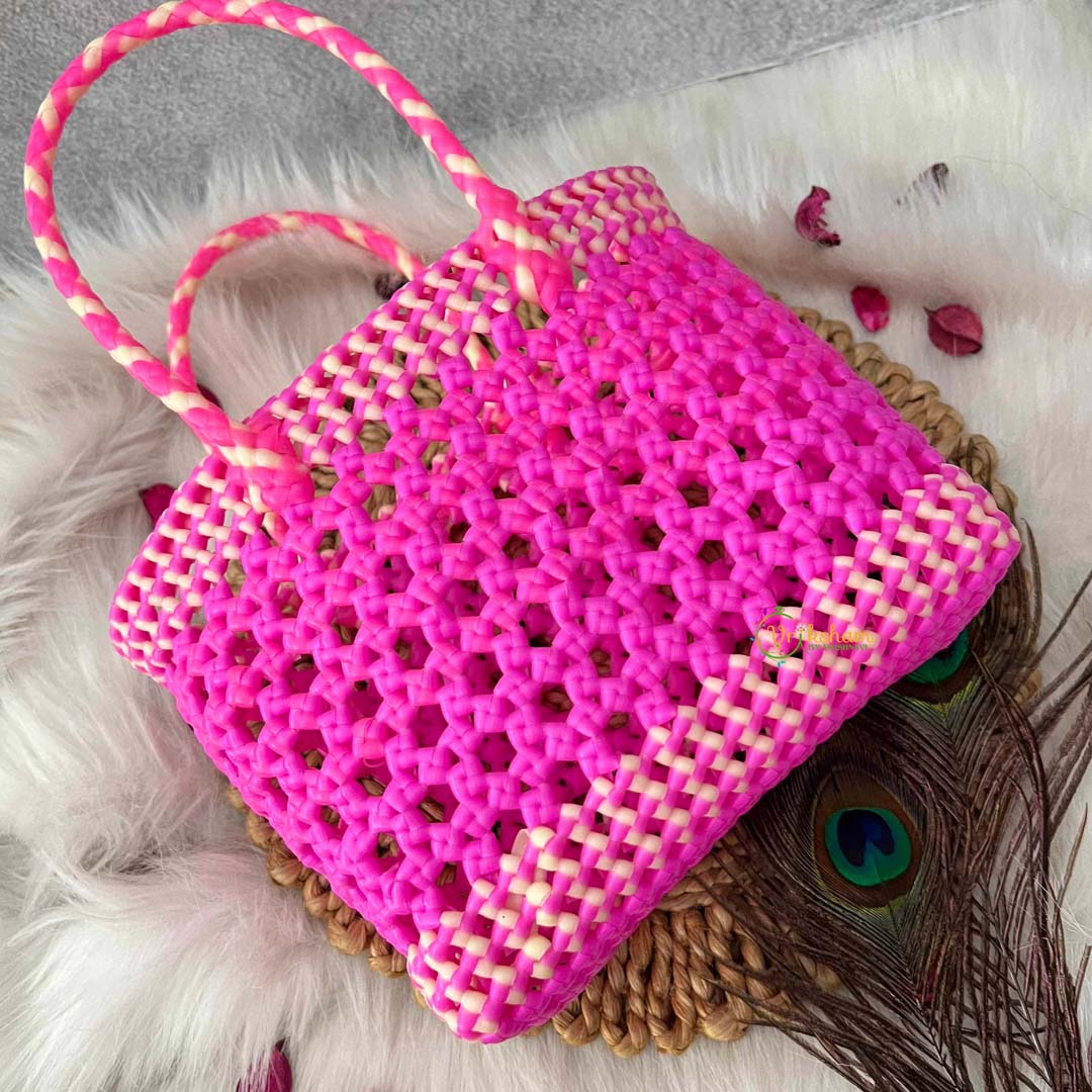 Make a bold statement with this striking handmade basket bag featuring vibrant hot pink plastic wire construction complemented by distinctive dual braided handles. The luminous color exudes contemporary confidence while the dual braided handle detail adds textural richness and artisanal craftsmanship appeal. Crafted from durable plastic wire materials, this basket combines aesthetic vibrancy with exceptional structural integrity and practical functionality. The thoughtfully designed silhouette provides generous capacity for your daily essentials, from shopping expeditions to travel necessities, while maintaining a fashion-forward aesthetic. The distinctive dual braided handles and meticulous handmade construction reflect superior artisanal quality and attention to detail. Perfect for the discerning individual who values bold creative expression and authentic heritage creation, this basket bag transcends conventional accessories to become a treasured companion that celebrates artisanal excellence with enduring style and memorable sophistication.