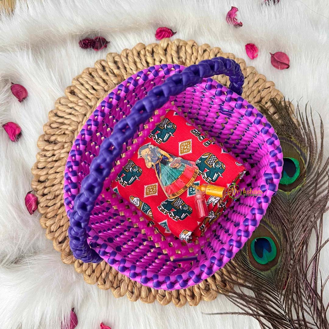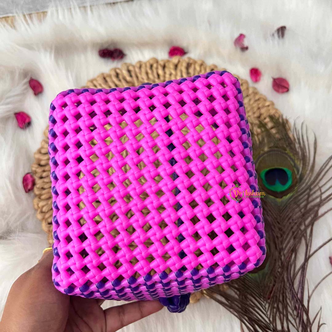 Embrace contemporary elegance with this exquisitely handmade square basket bag showcasing a charming dual-tone design in soft pink with a striking purple handle. The complementary color combination creates visual sophistication while the geometric square form adds modern structure and refined appeal. Constructed from durable plastic wire materials, this basket delivers exceptional quality and structural integrity designed for lasting use. The generously proportioned square silhouette provides substantial capacity for your daily essentials, from shopping finds to everyday items, while preserving an air of cultivated grace. The distinctive dual-tone aesthetic and meticulous handmade construction reflect superior artisanal craftsmanship and attention to detail. Ideal for the discerning individual who appreciates authentic handcrafted design, this basket bag transcends conventional accessories to become a treasured companion that celebrates heritage artistry with enduring style and timeless, distinctive appeal.