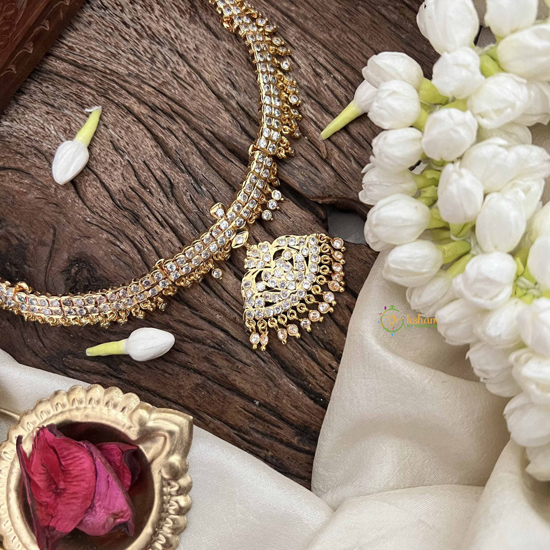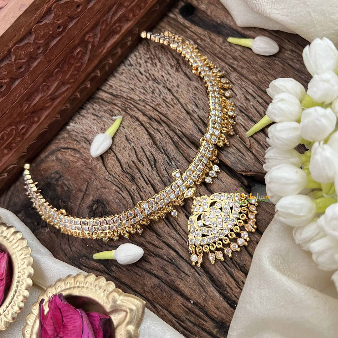 Celebrate love and elegance with this enchanting Heart Style Pendant Short Neckpiece, a sophisticated expression of affection and grace. Featuring a delicate heart-shaped pendant adorned with cascading diamond drops in pristine white, this piece radiates timeless romance and refined beauty. Each diamond catches the light brilliantly, creating an ethereal sparkle that draws admiration. The thoughtfully proportioned short length makes it ideal for layering or wearing as a standalone statement, seamlessly transitioning from special occasions to cherished everyday moments. Whether gifting to someone dear or treating yourself, this neckpiece embodies the perfect marriage of sentimental design and luxurious craftsmanship, making it an heirloom-worthy addition to any jewelry collection.