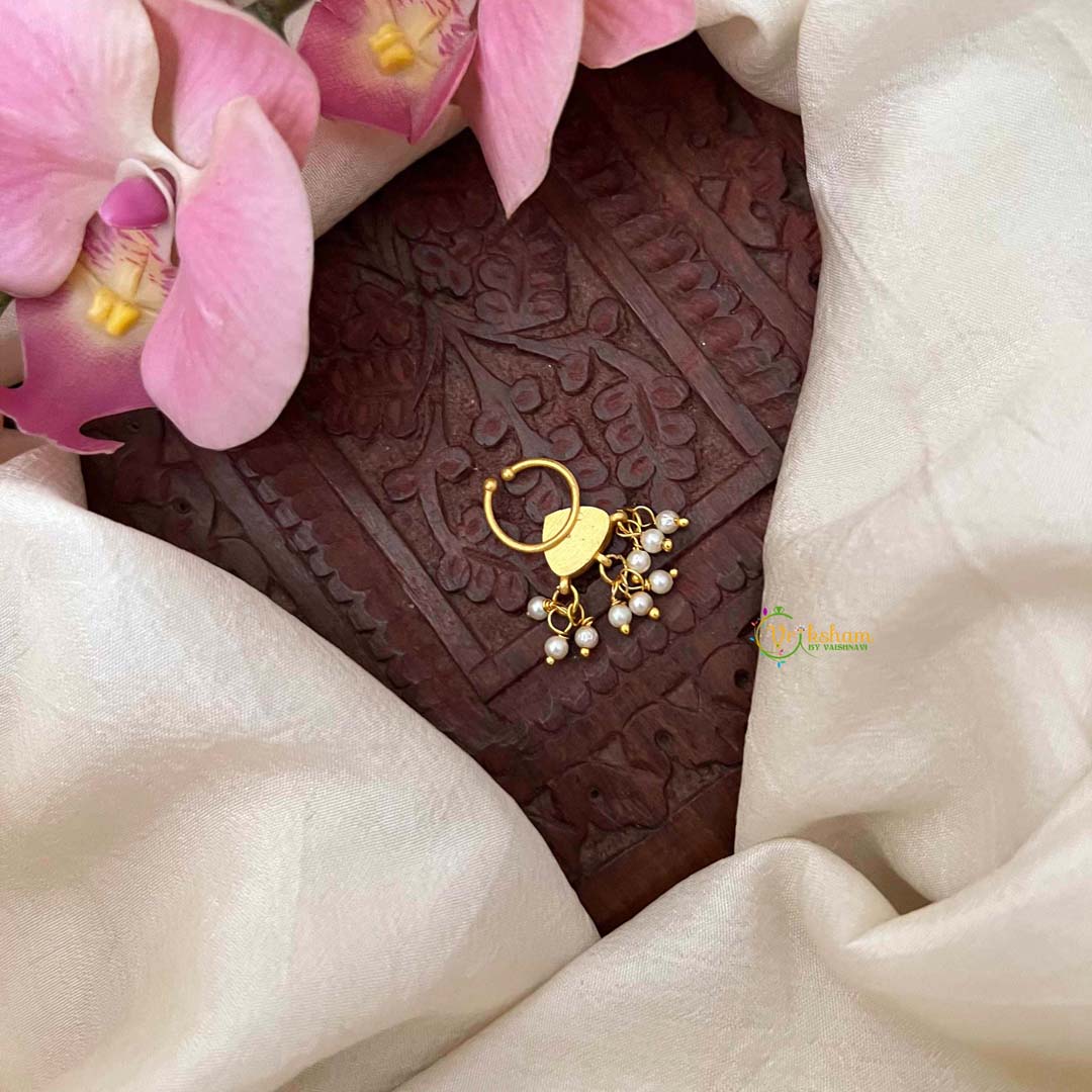 Experience timeless heritage with this magnificent Heritage Kundan Nath septum ring, featuring an ornate design adorned with white and green gemstones complemented by graceful pearl danglers. This distinguished piece draws from classical nath traditions, reimagined as a contemporary septum accessory that celebrates cultural artistry. The luminous pearls cascade delicately, creating movement and visual intrigue, while the intricate Kundan setting showcases exceptional craftsmanship. An heirloom-quality accessory for those who appreciate the convergence of tradition and modern sensibility, this sophisticated ring elevates your personal style with enduring elegance and refined cultural resonance.