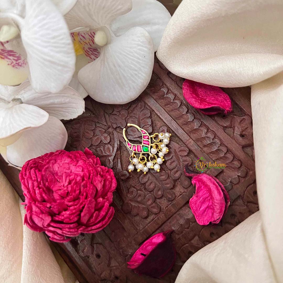 Celebrate your most radiant moments with this Indian bridal leaf-style kundan jadau septum ring, a piece designed for the bride who honors tradition with contemporary grace. Featuring resplendent green and red kundan stones arranged in an elegant leaf motif, this accessory embodies the opulence and refinement expected of bridal jewelry. The meticulous jadau craftsmanship reflects generations of artisanal mastery, creating a piece worthy of your special day. The jewel tones symbolize prosperity and beauty, while the sophisticated design complements traditional bridal aesthetics without overwhelming delicate facial features. An ideal choice for the discerning bride seeking a septum ring that marries cultural heritage with timeless elegance, this piece becomes a cherished heirloom celebrating your journey.