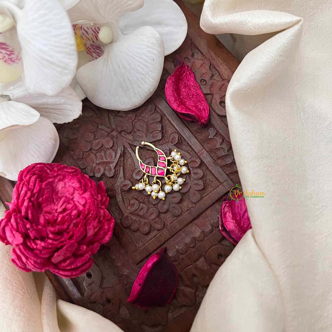 Radiate timeless beauty with this Indian bridal leaf-style kundan jadau septum ring, a stunning accessory crafted for the bride who embraces cultural heritage with refined elegance. Adorned with brilliant red kundan stones set in an exquisite leaf design, this piece captures the essence of traditional bridal jewelry artistry. The deep crimson hue symbolizes auspiciousness and passion, while the meticulous jadau craftsmanship demonstrates uncompromising quality and attention to detail. The graceful leaf motif adds sophistication without excessive ornamentation, allowing your natural beauty to shine. Perfect for the discerning bride seeking a septum ring that honors Indian jewelry traditions while maintaining contemporary grace, this piece becomes a treasured keepsake of your most significant celebration.