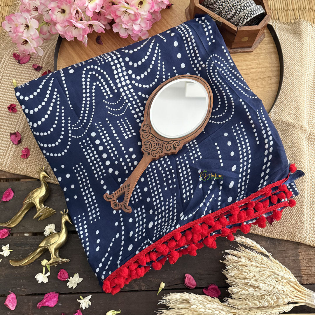 Introducing the Vriksham Indigo Cotton Mulmul Saree - the epitome of luxury and sophistication. Made from the finest cotton mulmul fabric, this saree is lightweight and comfortable, perfect for everyday wear. The elegant indigo color and intricate design makes it a must-have for any fashionista. Elevate your wardrobe with this exclusive piece.