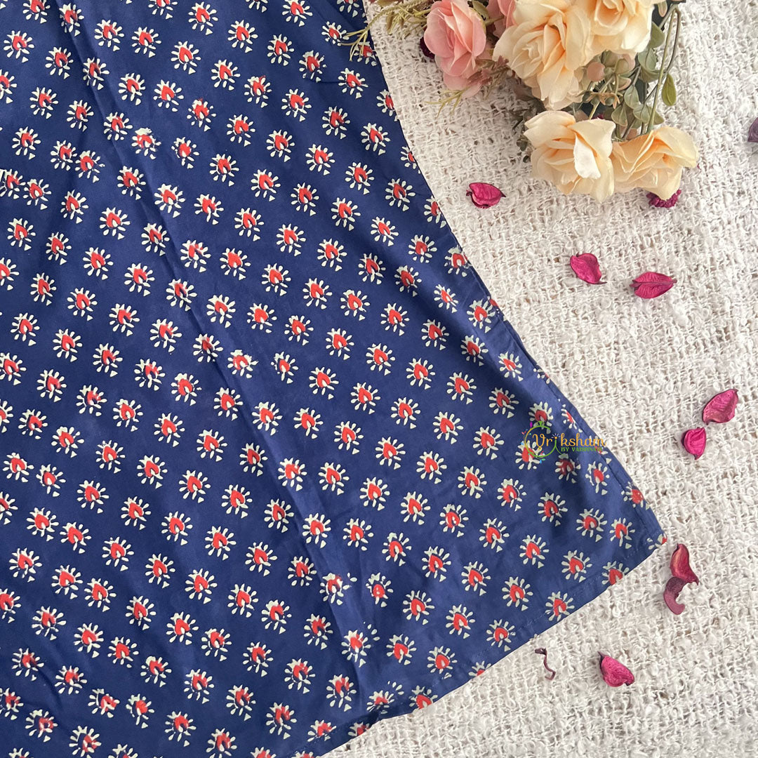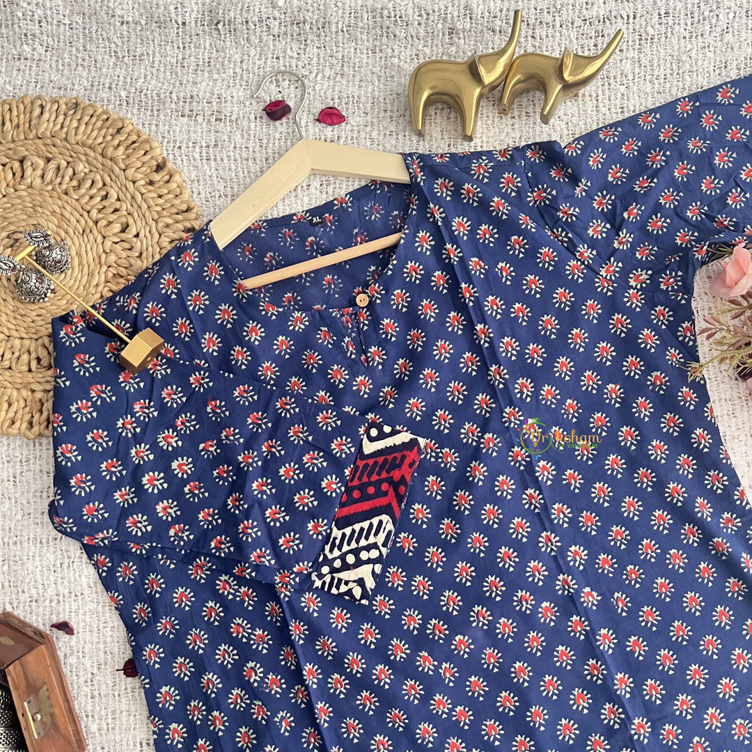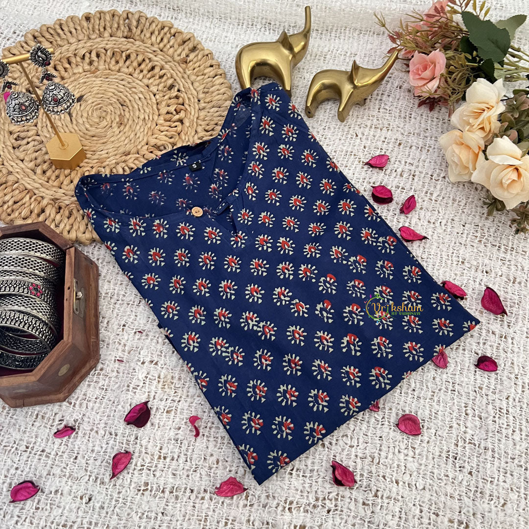 Introducing Vriksham Ink Blue with White Handblock Cotton Short Kurti, the perfect blend of style and comfort. Made with 100% cotton and handblock printing, this elegant 3/4 sleeve kurti is suitable for both daily wear and office wear. Elevate your wardrobe with this luxurious piece and make a statement wherever you go.