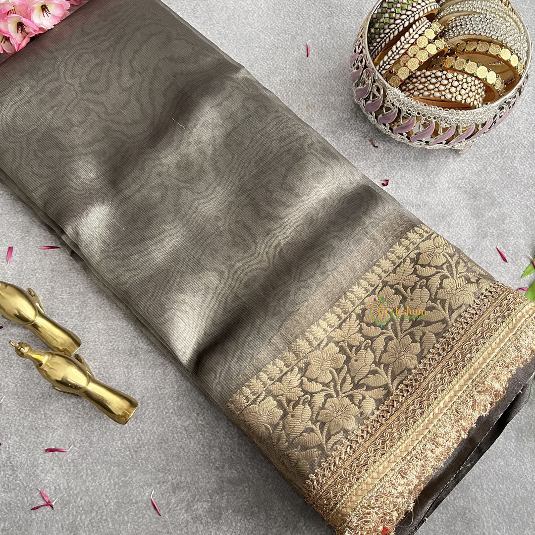 Indulge in luxury with our Grey Organza Saree Lace Border. Handwoven and adorned with intricate details, this saree exudes elegance and sophistication. Crafted from premium quality fabric, it offers a smooth and comfortable fit. Elevate your wardrobe with this timeless piece, perfect for special occasions.