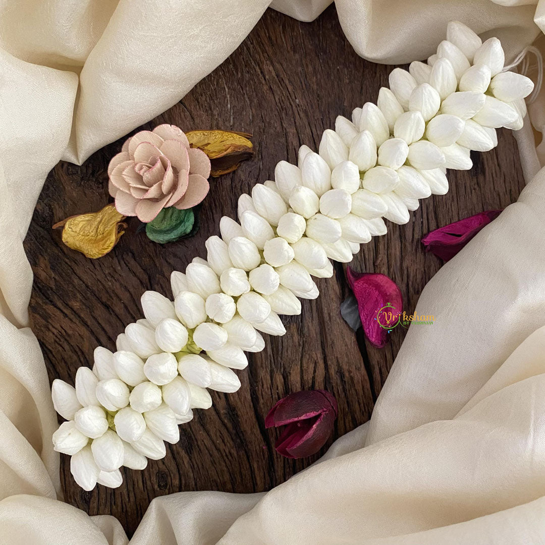 Introducing the Vriksham Jasmine Mogra Hair Accessories Mallipo Veni-Gajra, the perfect addition to your hair routine. Elevate your hairstyle with this delicate and luxurious Juda bun, adorned with mogra flowers. Transform your look with this elegant and exclusive hair accessory.