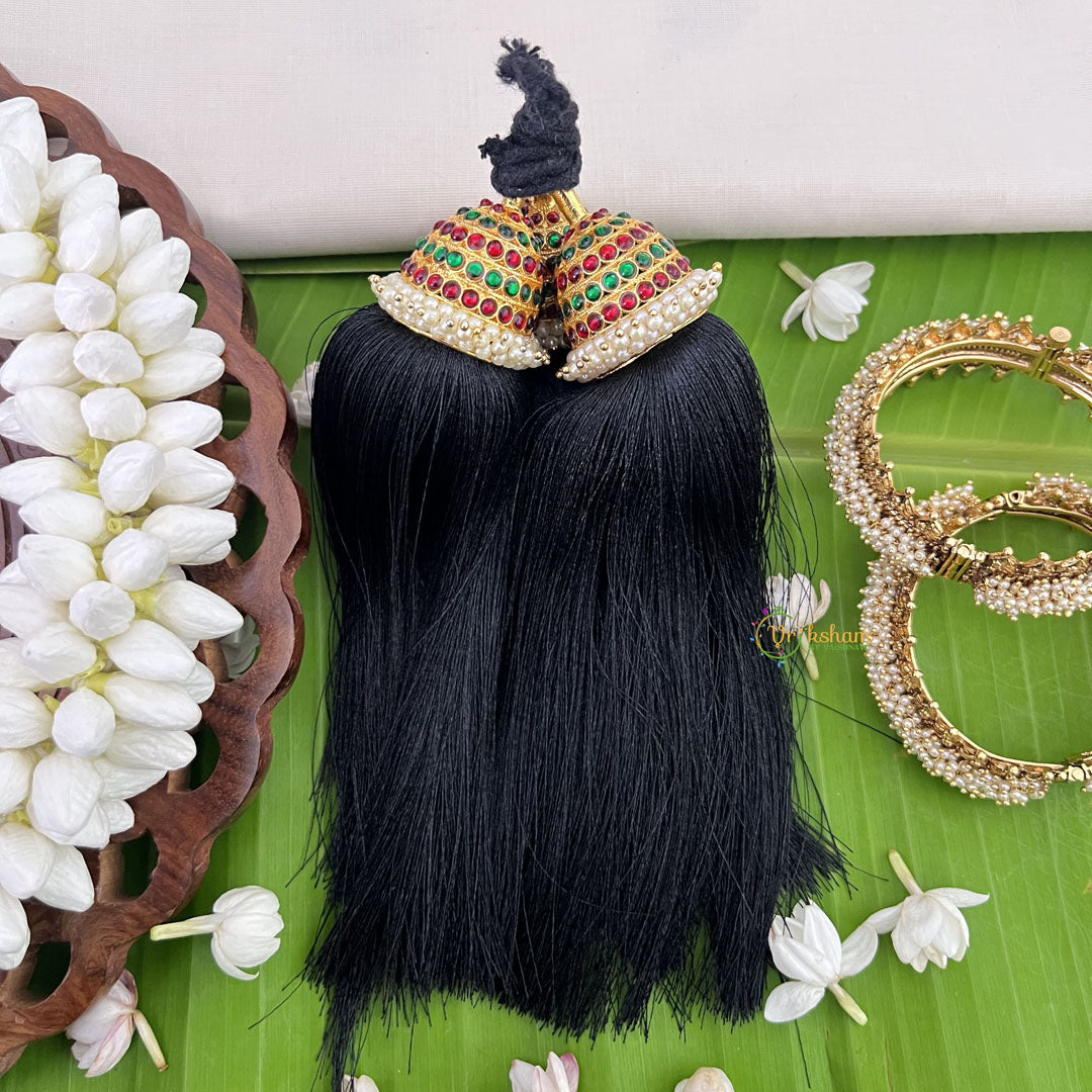 The Vriksham Kemp Style Kunjalam in Red and Green Pearls combines vibrant hues with elegant design, reflecting exquisite craftsmanship. This sophisticated piece enhances your look with a harmonious blend of rich colors and traditional charm, perfect for elevating your attire on special occasions.