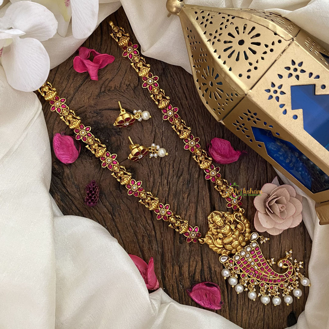 Introducing our luxurious Vriksham Lakshmi & Peacock Pendant Kundan Jadau Neckpiece. Adorned with intricate red and white beads, this piece exudes elegance and sophistication. Embodying the grace and beauty of the Lakshmi and peacock, this neckpiece is perfect for those who appreciate the finer things in life. Elevate your style with this exclusive, handcrafted masterpiece.