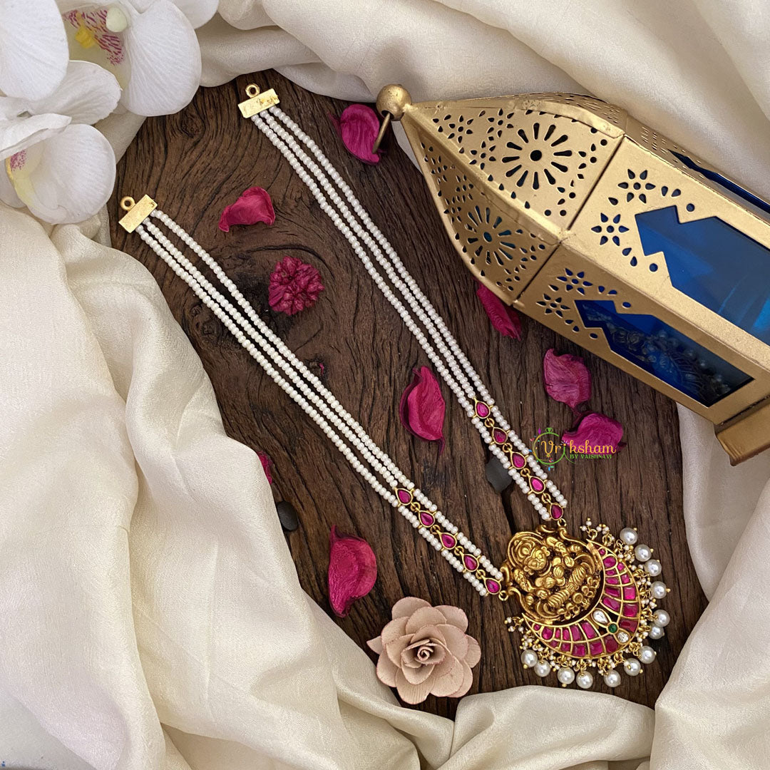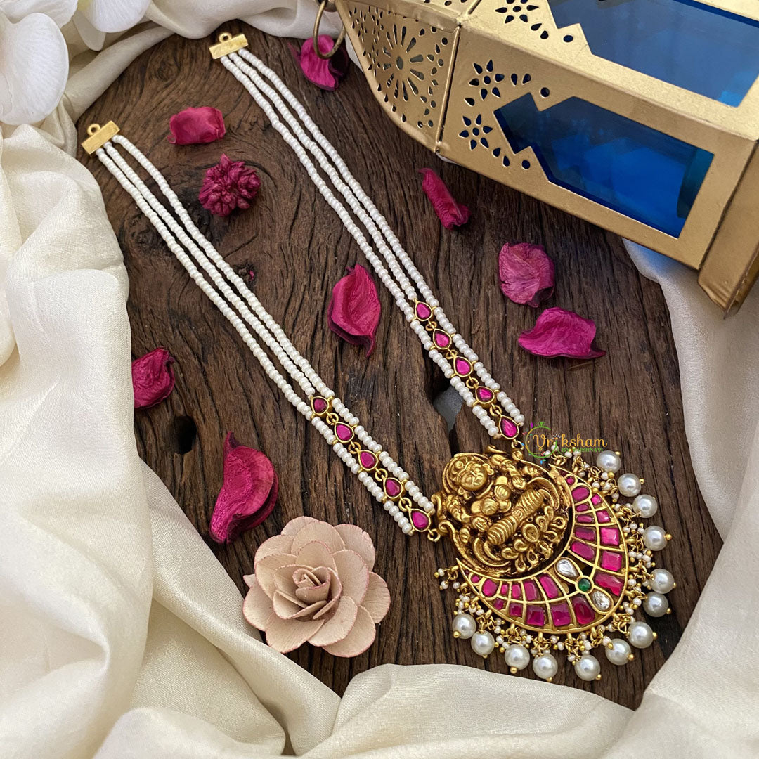 Introducing the luxurious Vriksham Lakshmi Pendant Kundan Jadau White Beaded Mala-White. This exclusive piece features intricate Kundan Jadau work and white beads, symbolizing prosperity and elegance. Adorn yourself with this tasteful piece to stand out in any crowd. Experience the world of art, literature, and fashion with Vriksham.
