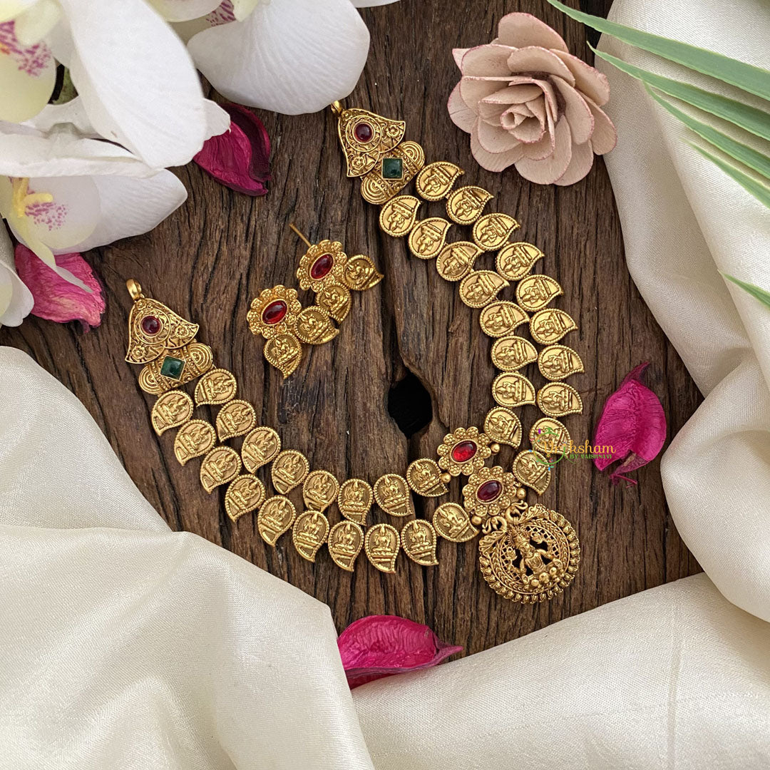 Elevate your style with the divine Vriksham Lakshmi Pendant, adorned with a 2 layer Maanga neckpiece. Exude luxury and elegance as you embody the grace and prosperity of the goddess Lakshmi. Perfect for any occasion, this pendant and neckpiece duo will add a touch of sophistication to any outfit.