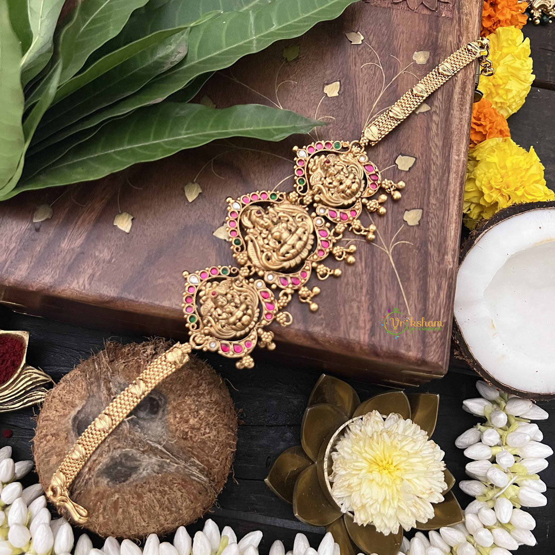The Vriksham Lakshmi Temple Vaddanam 1 gm Gold Finish Choker showcases exquisite temple-inspired craftsmanship adorned with intricate Lakshmi motifs. Finished in a subtle 1 gm gold sheen, this choker embodies cultural elegance while offering a lightweight, comfortable fit. Perfect for enhancing traditional attire with a sophisticated and timeless appeal.