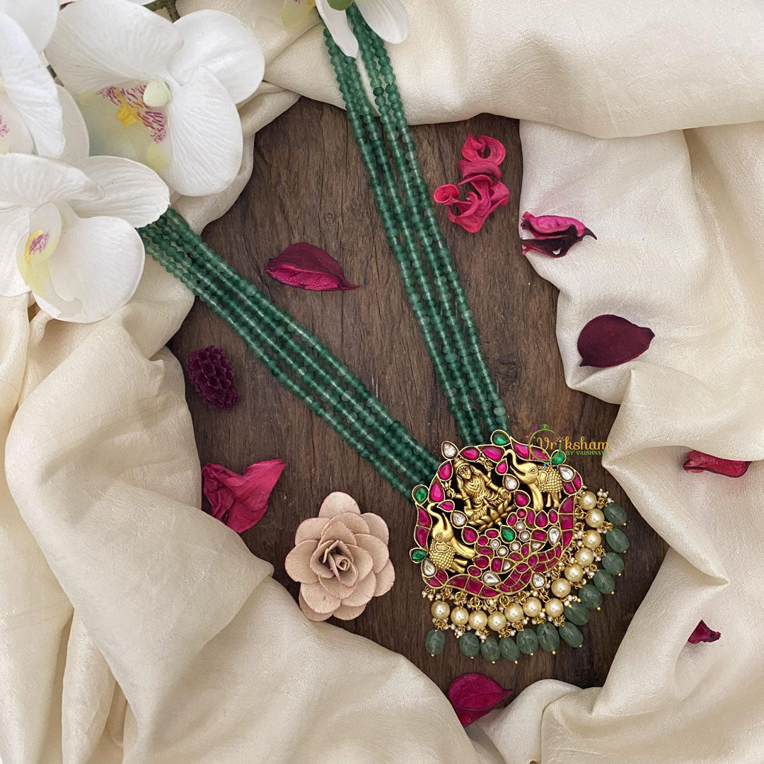Indulge in luxury with our Vriksham Lakshmi necklace featuring a stunning dual elephant design adorned with Jadau Kundan. Immerse yourself in elegance and opulence with this exquisite piece, perfect for adding a touch of sophistication to any outfit. Elevate your style with Vriksham Lakshmi.