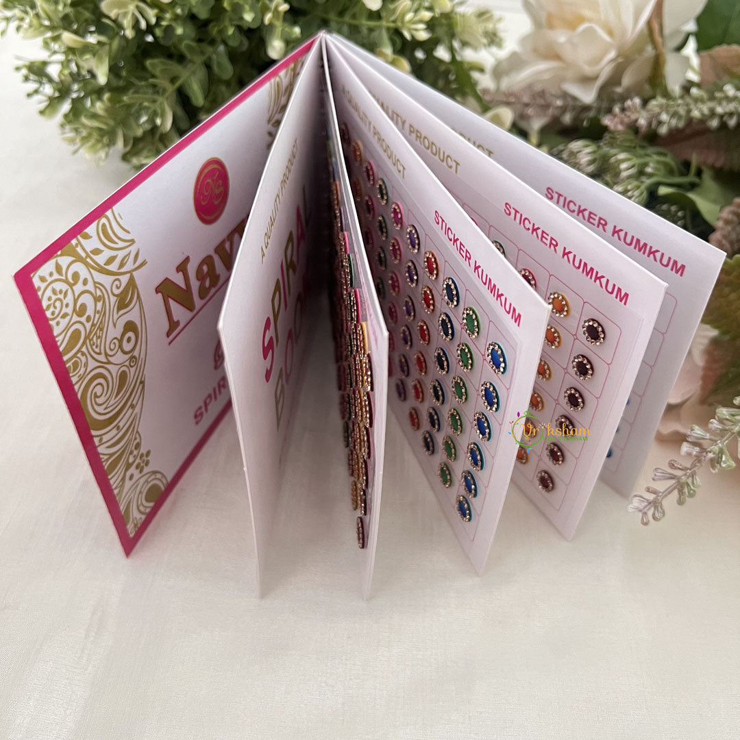 The Vriksham LCT Stone Shaded Border Bindi Book features 300 exquisitely designed bindis, each showcasing a delicate shaded border accented with sparkling LCT stones. This collection offers a sophisticated accessory to enhance your traditional look with subtle elegance, perfect for adding a refined touch to any ensemble.