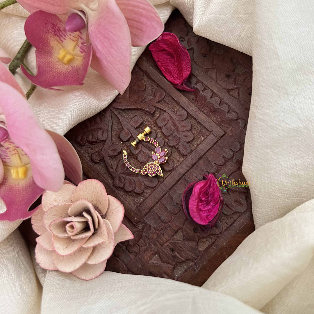 The Vriksham Leaf & Diya Style Press Naths in red features a refined design combining elegant leaf and diya motifs. Crafted for a secure and comfortable press fit, this nose pin adds a vibrant yet sophisticated touch, perfect for enhancing both traditional and modern styles with timeless grace.