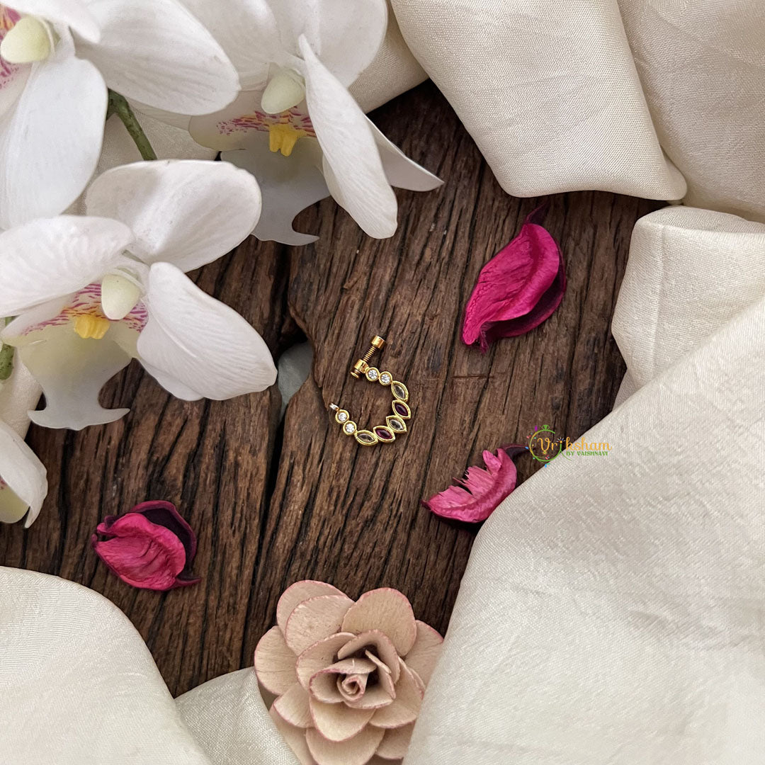 The Vriksham Leaf Style Naths combines elegant red and white tones in a delicate leaf-inspired design. This finely crafted nose pin blends traditional artistry with contemporary sophistication, making it a graceful accessory that enhances any look with subtle charm and refined beauty.