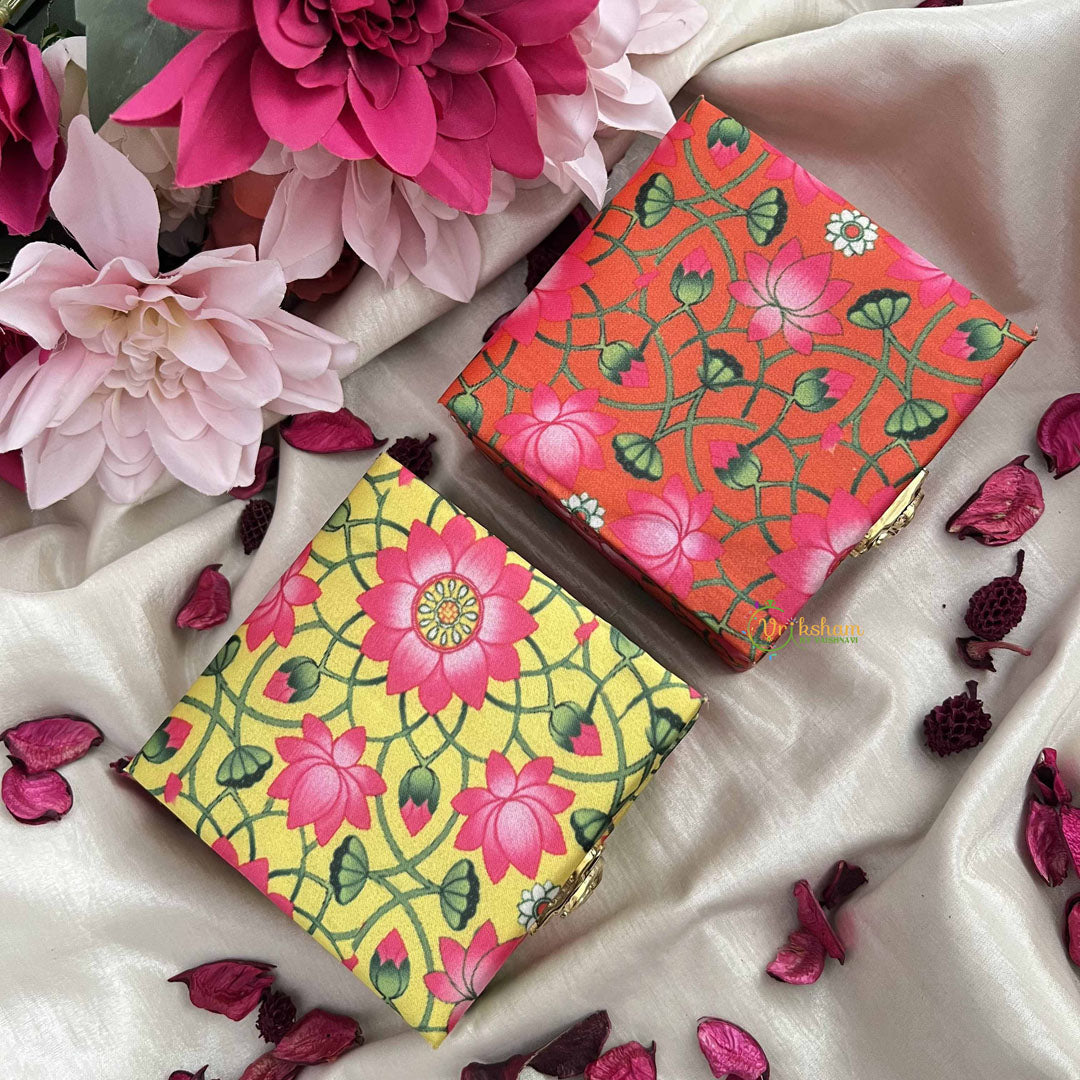 Enhance your festive gifting with the Vriksham Lotus Bloom Gift Boxes, a set of five elegantly crafted boxes in assorted colors. Featuring delicate floral designs, these keepsake boxes bring a refined and vibrant touch to any celebration. Their durable construction ensures your gifts or treasured keepsakes are beautifully protected, making every presentation memorable and sophisticated.