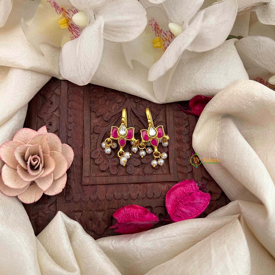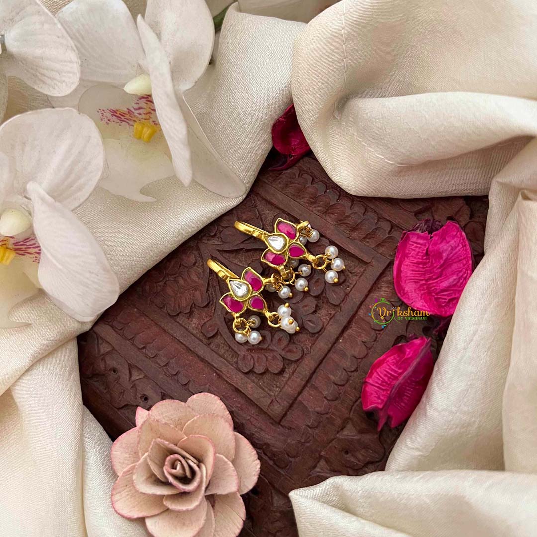 Radiate divine grace with this Lotus Floral Style Kundan Jadau Bugadi, a transcendent fusion of sacred symbolism and masterful artistry in white and red. The revered lotus motif, meticulously rendered through authentic Kundan work, represents purity and spiritual elegance. Luminous pearl drops cascade gracefully, creating an enchanting interplay of movement and light that enhances the design's inherent beauty. The sophisticated white and red palette strikes a perfect balance between serene refinement and vibrant celebration, making this piece versatile for weddings and momentous occasions. Every element showcases impeccable craftsmanship, with traditional Jadau techniques ensuring both visual splendor and enduring quality. A spiritually meaningful accessory that honors heritage while embodying contemporary sophistication, this bugadi becomes a cherished heirloom transcending generations.