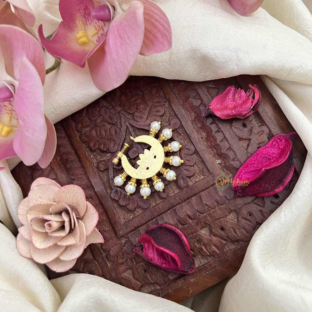 The Vriksham Lotus Style Nath features a harmonious mix of red, white, and green stones adorned with delicate pearls, all set in exquisite Jadau craftsmanship. This press-fit nose pin captures the elegance of the lotus motif while ensuring comfortable wear, elegantly enhancing your traditional ensemble.
