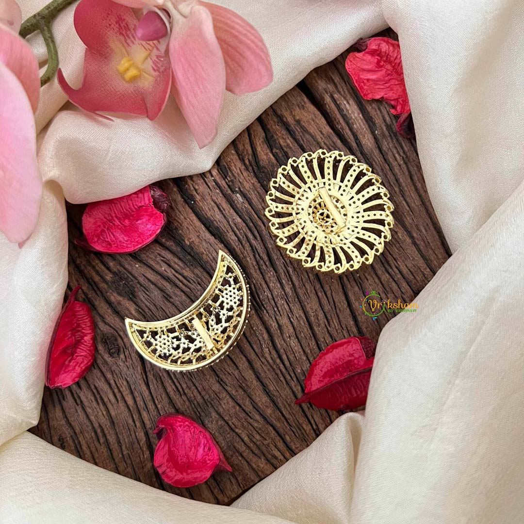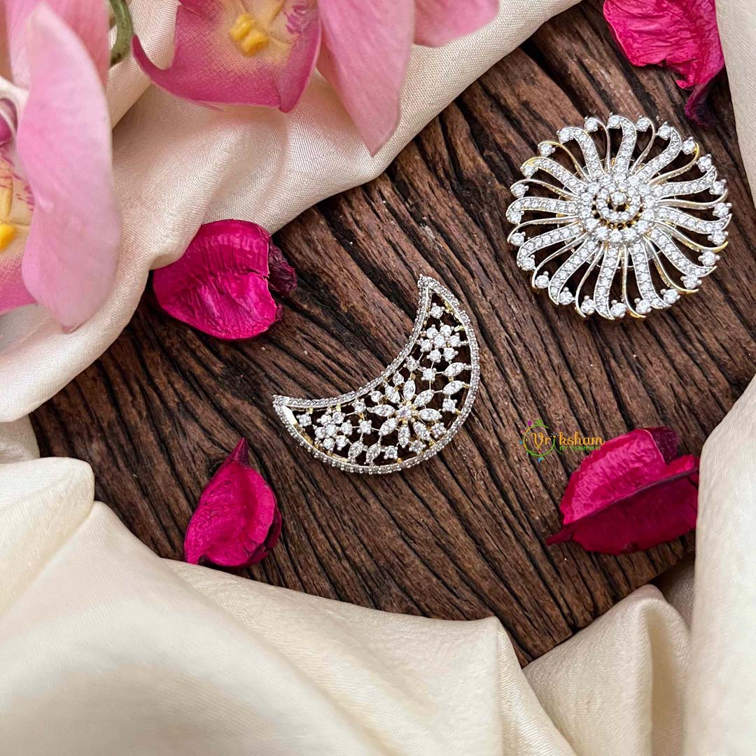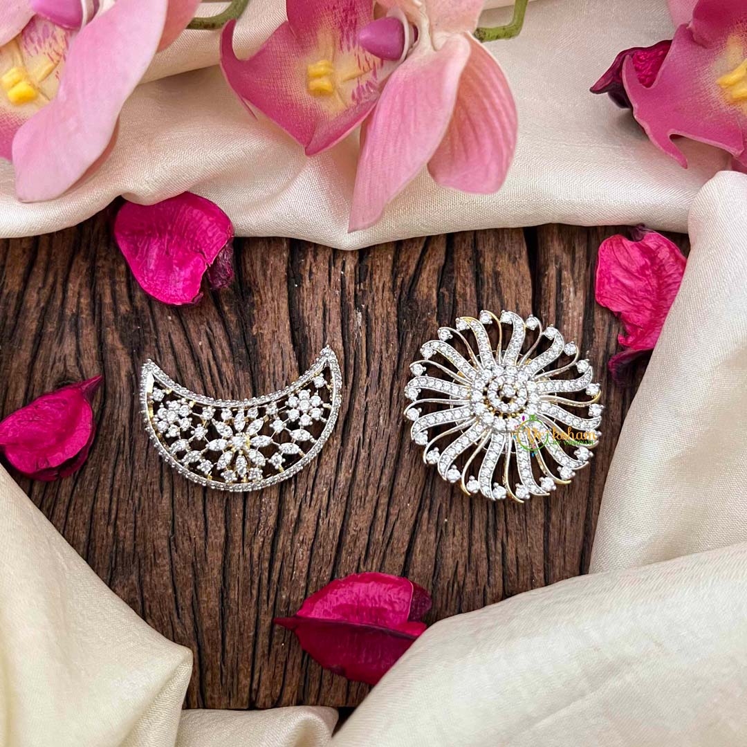Indulge in opulent elegance with this luxurious Silver-Finish CZ Stone Hair Chandran and Suryan Billai. Meticulously designed for the discerning wearer, this piece features radiant cubic zirconia stones set against a lustrous silver finish that catches light with every movement. The sophisticated craftsmanship elevates your hair adornment to an art form, blending traditional styling with contemporary glamour. Whether adorning your locks for special occasions or adding a touch of refined sparkle to everyday moments, this accessory exudes confidence and grace. A statement piece that transforms your appearance with understated luxury and timeless appeal.