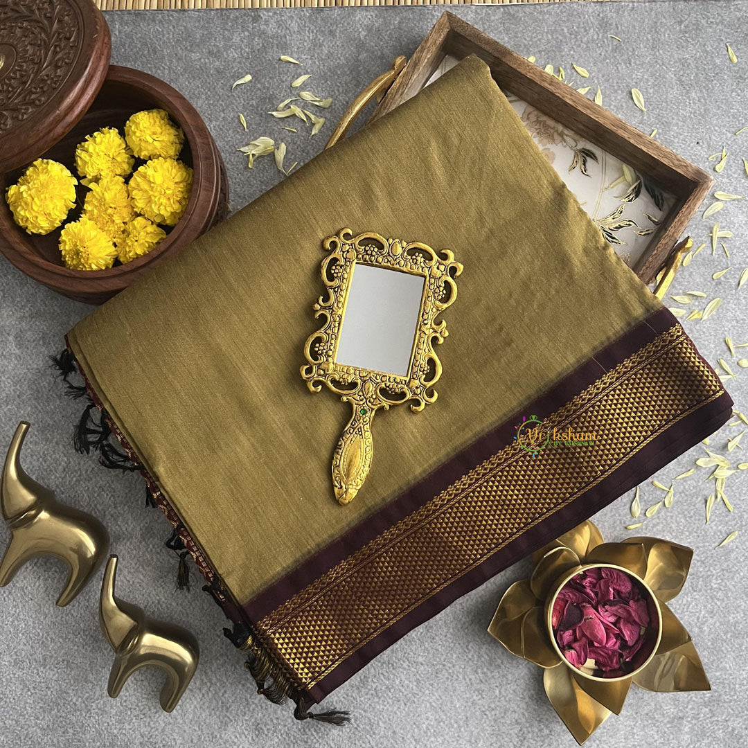 Mehandi Green With Maroon Border - Kalyani Cotton Saree - Kalyani Cotton Saree - These sarees are highly comfort, versatility, and timeless appeal, making them a popular choice for both casual and formal occasions. Whether worn during festive celebrations, weddings, or everyday wear, Kalyani Cotton Sarees exude grace and sophistication, embodying the essence of Indian tradition and craftsmanship - comes with Blouse attached. Contrast border saree. Poly mix cotton. .
