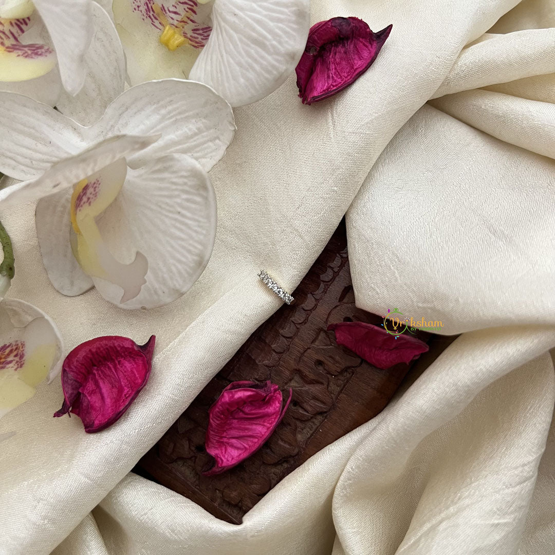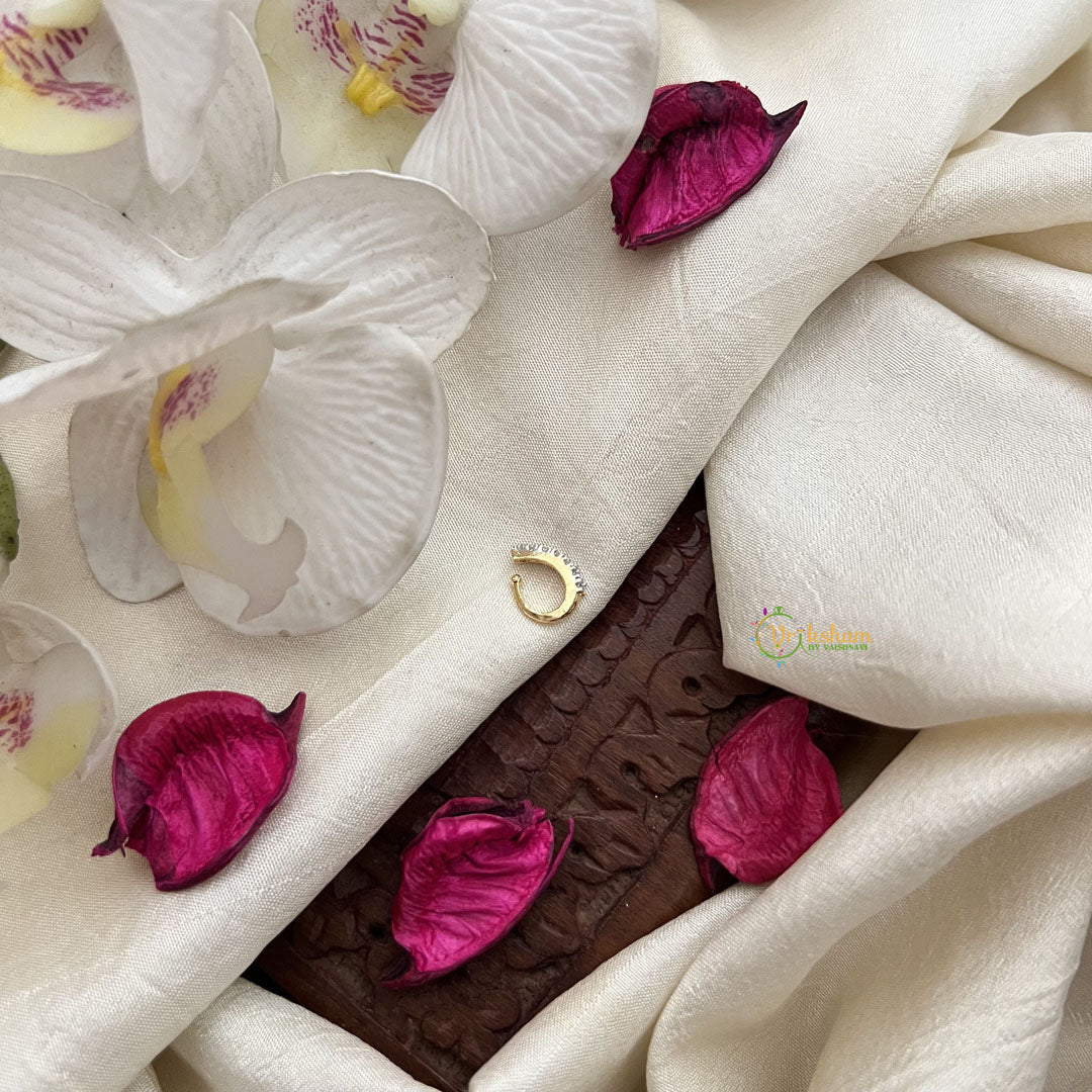 The Vriksham Minimal Stone-Embellished Ethni Press Nath in gold features a refined design with subtle stone accents that highlight its elegant simplicity. This press-on nose pin offers a comfortable and secure fit, making it perfect for both everyday wear and special occasions. Its sophisticated style adds a delicate touch of grace to your ensemble.
