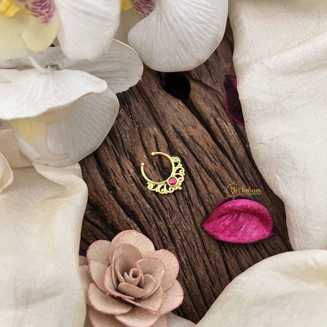 Golden Naths/Nose ring for Non - Pierced Nose. People who do not have piercing do not have to worry about not being able to wear naths. These nose rings helps people with non pierced nose also wear the same with a screw like holding. The moment you see the nath you will be able to understand how it will sit on the nose.