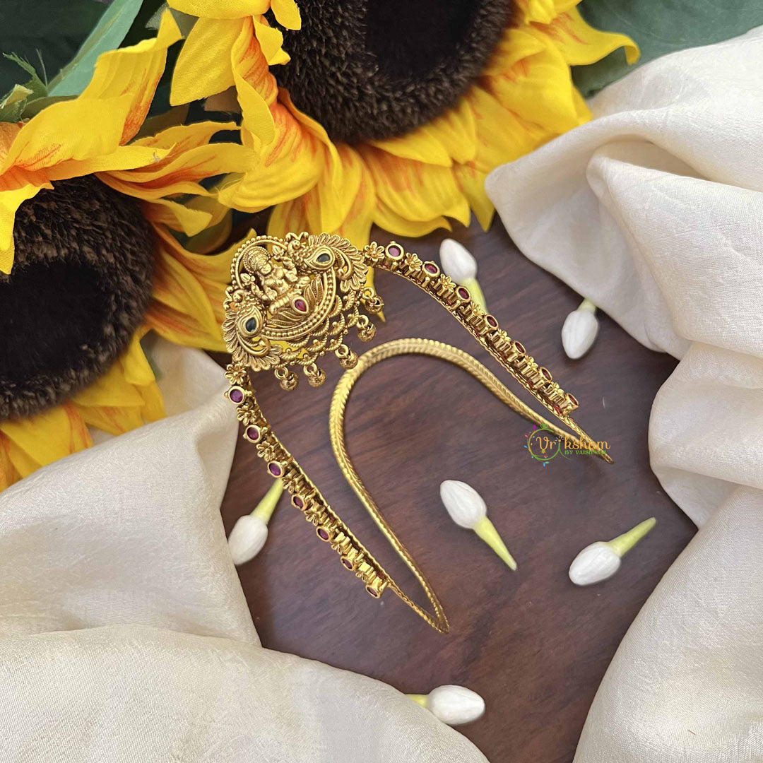 Celebrate understated elegance with this Minimalist Gold Floral Style Nakshi Lakshmi Vangi Temple Armlet, where refined simplicity meets spiritual devotion. Delicate floral motifs, rendered through subtle nakshi detailing, frame the graceful presence of Goddess Lakshmi in a composition that honors restraint and sophistication. Adorned with lustrous gold beads that add gentle luminosity, this temple armlet captures the essence of classical sanctuary jewelry with a contemporary sensibility. Crafted in warm gold finish, the piece embodies the ornamental beauty of traditional temple design without excessive ornamentation, allowing the spiritual significance to shine through. The minimalist approach creates a versatile accessory suitable for both daily spiritual practice and special occasions, seamlessly complementing any personal style. Perfect for those who appreciate the power of understated beauty and meaningful symbolism, this armlet serves as a refined talisman that honors Lakshmi's blessings while making a graceful statement of cultural authenticity and tim