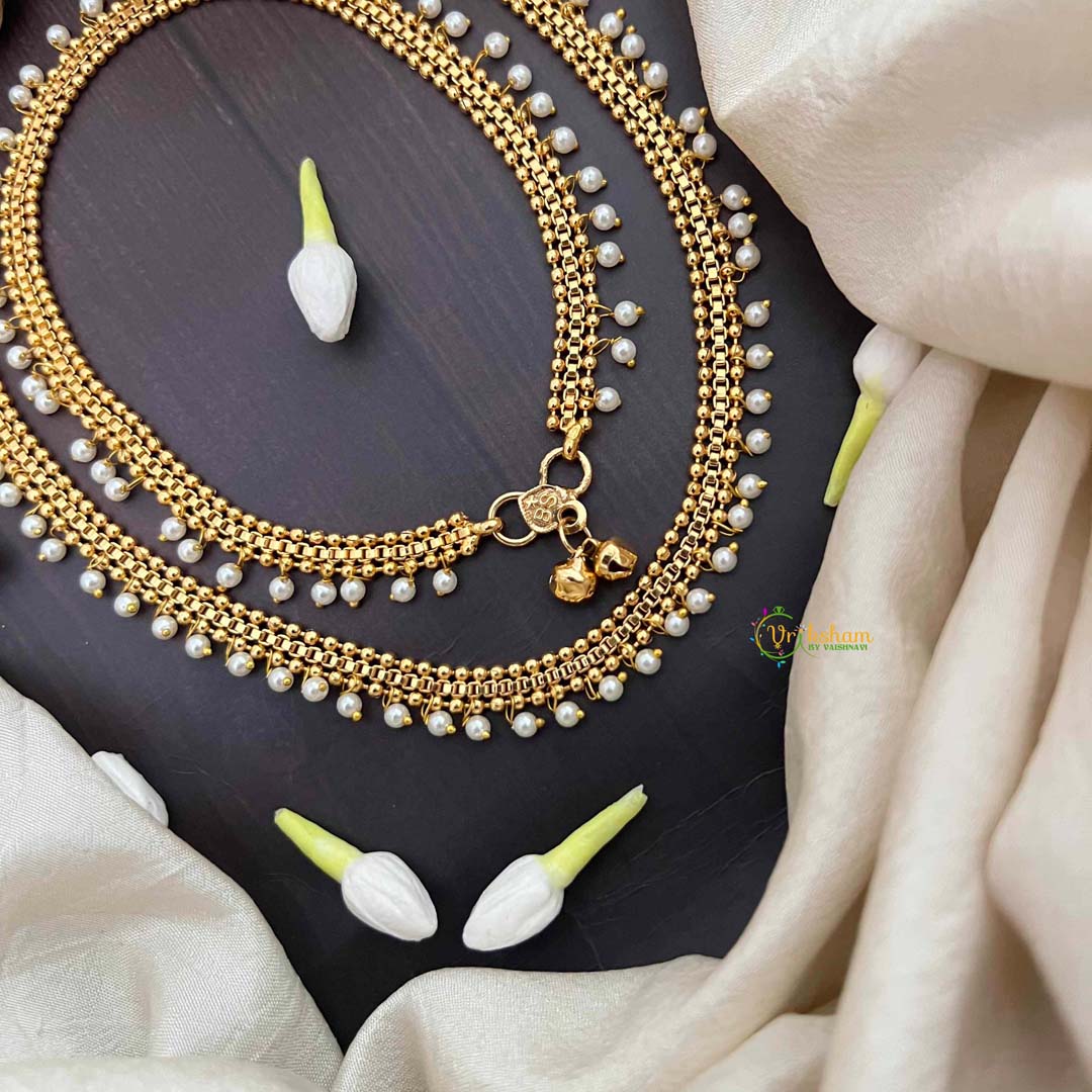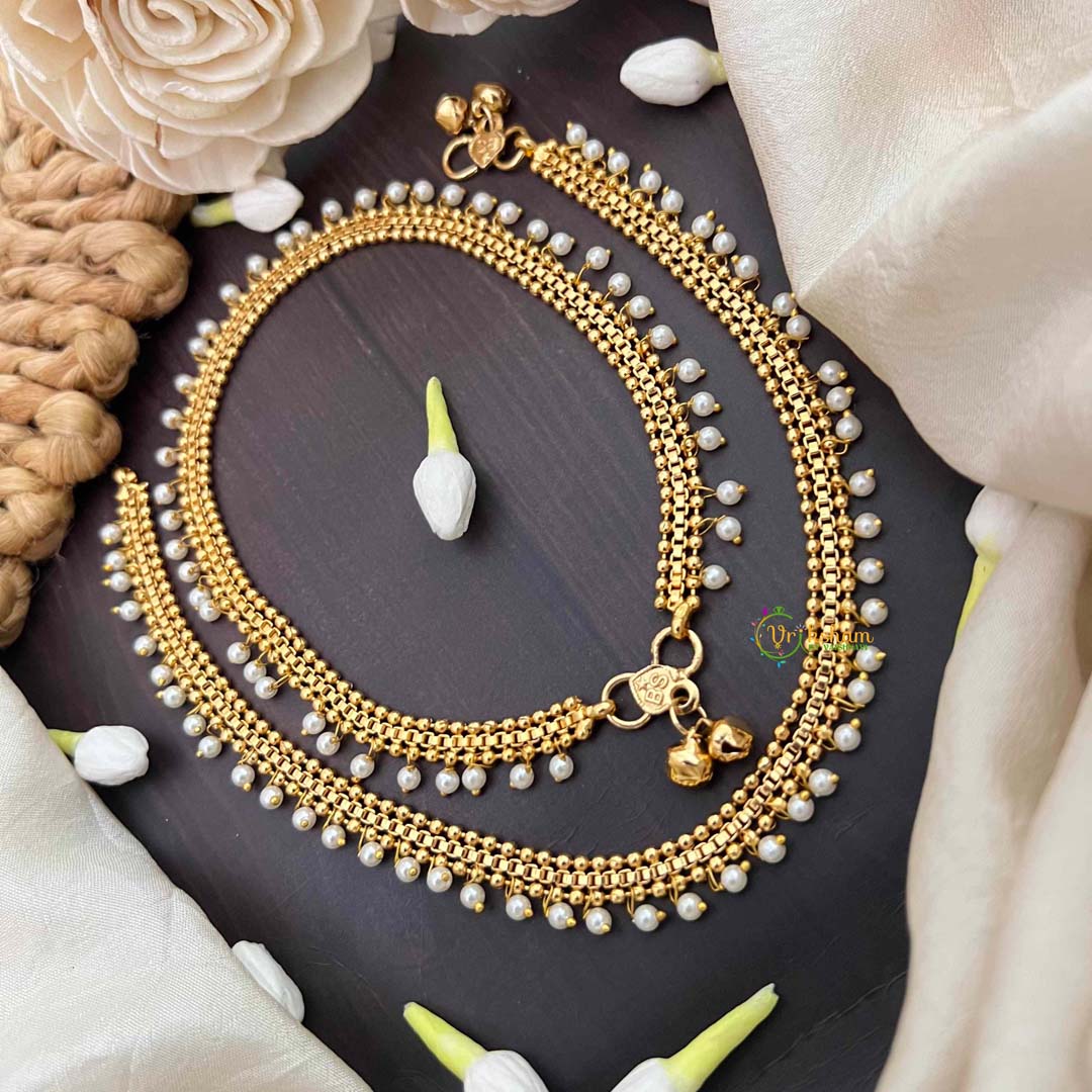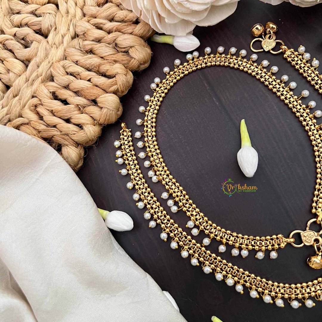 Elevate your ankle jewelry collection with these exquisite minimalist anklets, where understated elegance meets timeless appeal. Crafted with a refined golden finish and adorned with lustrous pearl accents, these pieces strike the perfect balance between simplicity and sophistication. Ideal for both everyday wear and special occasions, they complement any ensemble with subtle grace. The delicate design ensures comfort throughout the day while making a refined statement. Perfect for those who appreciate quality craftsmanship and classic aesthetics.