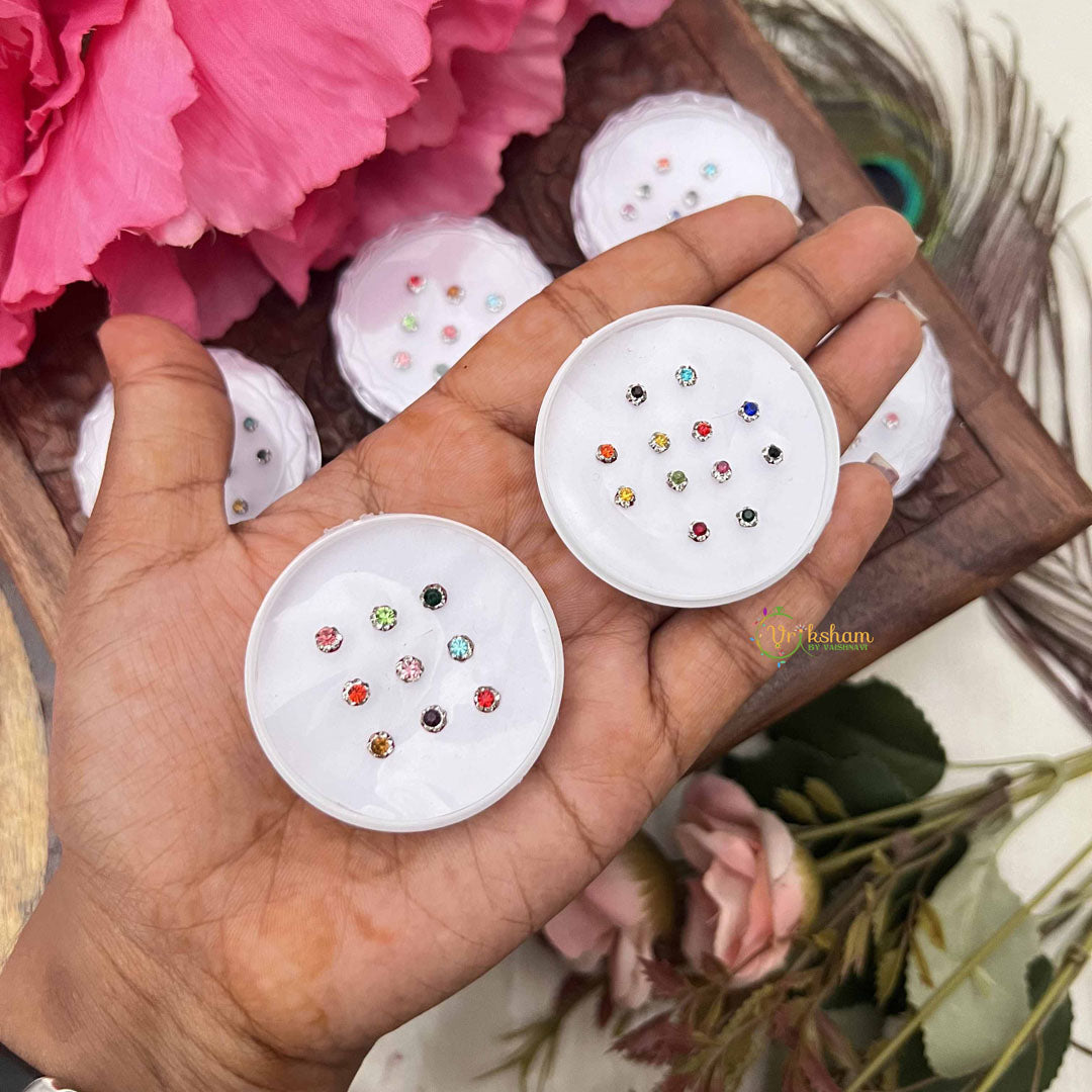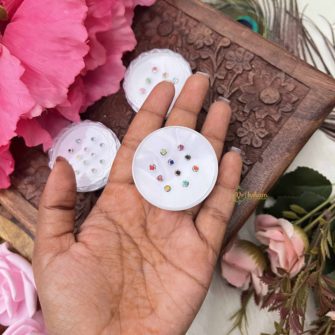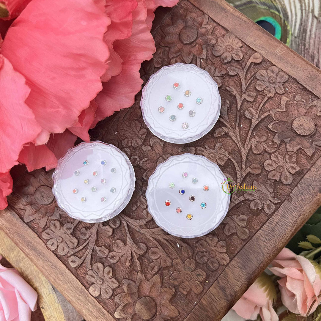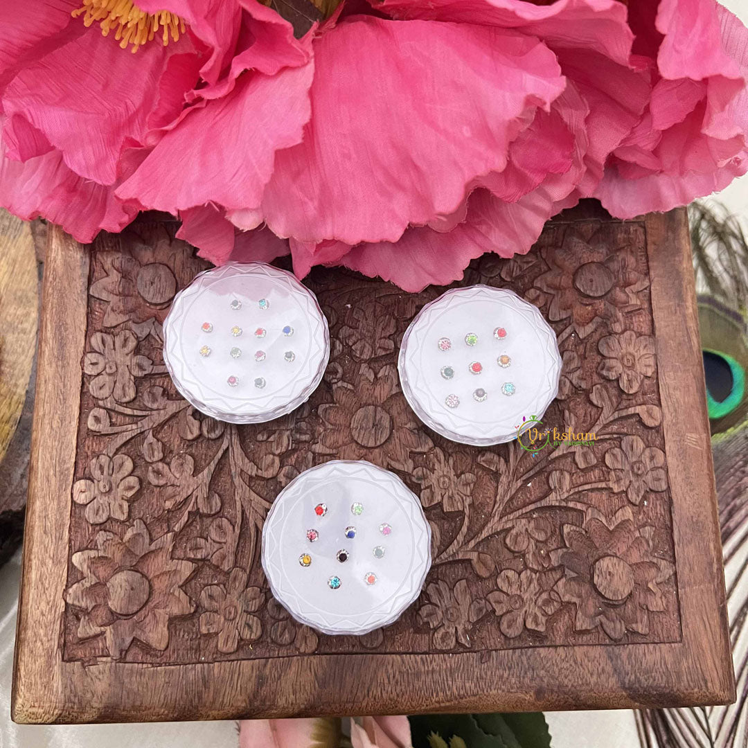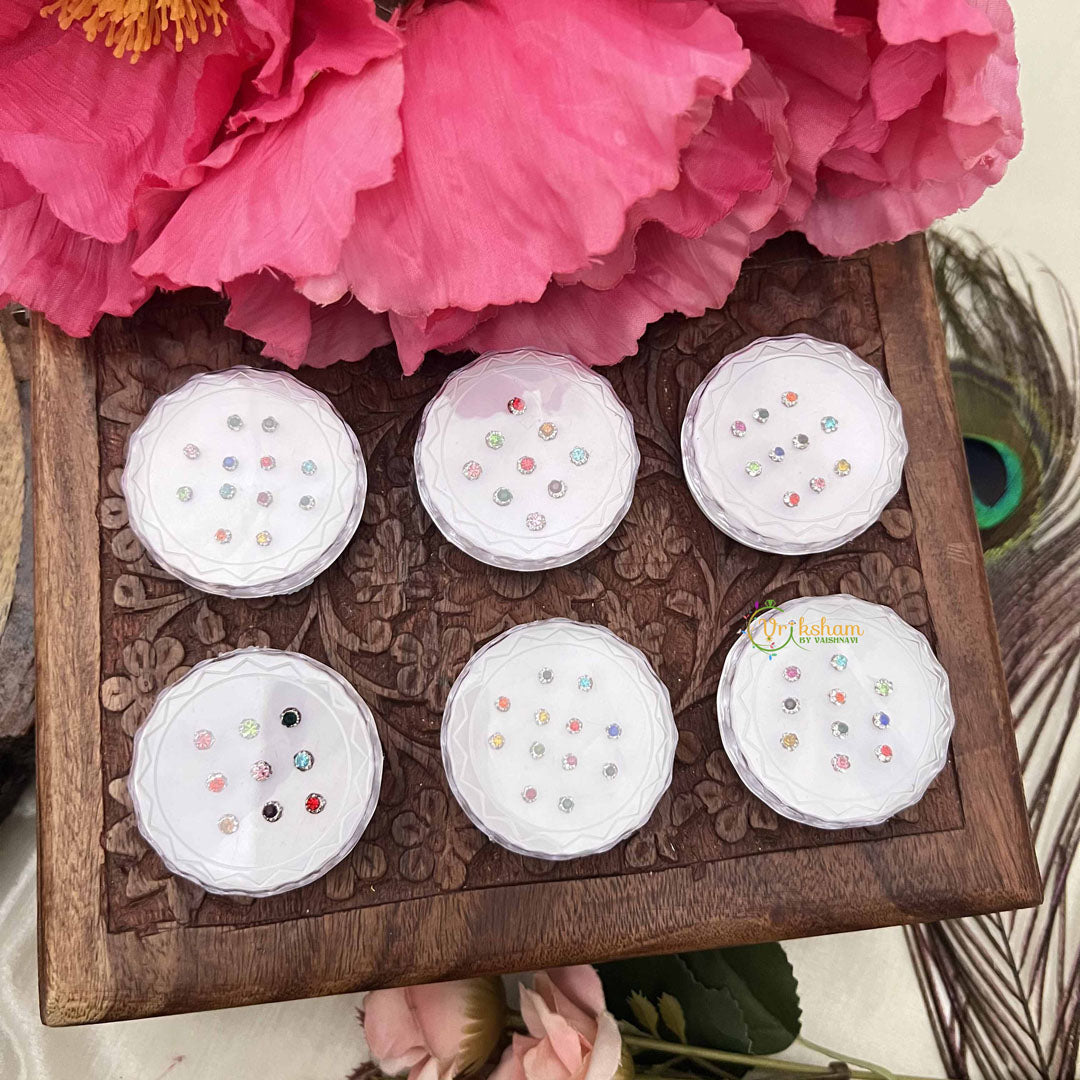 Indulge in timeless beauty with the Vriksham Multi Color Round Sparkle Bindi Case, a refined collection of twelve exquisite sets elegantly packaged in a protective plastic box. Each bindi features luminous sparkle detailing across a spectrum of complementary colors, designed to enhance your natural radiance for any celebration. This thoughtfully curated assortment ensures you have the perfect accent for every ensemble and occasion, from intimate gatherings to grand festivities. Experience the seamless blend of tradition and contemporary glamour with this sophisticated bindi collection.