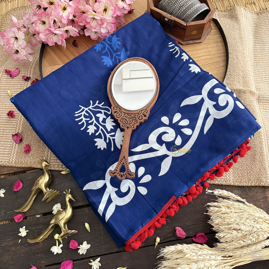 Introducing the Vriksham Navy Blue Cotton Mulmul Saree - the epitome of luxury and sophistication. Made from the finest cotton mulmul fabric, this saree is lightweight and comfortable, perfect for everyday wear. The elegant navy blue color and intricate design makes it a must-have for any fashionista. Elevate your wardrobe with this exclusive piece.