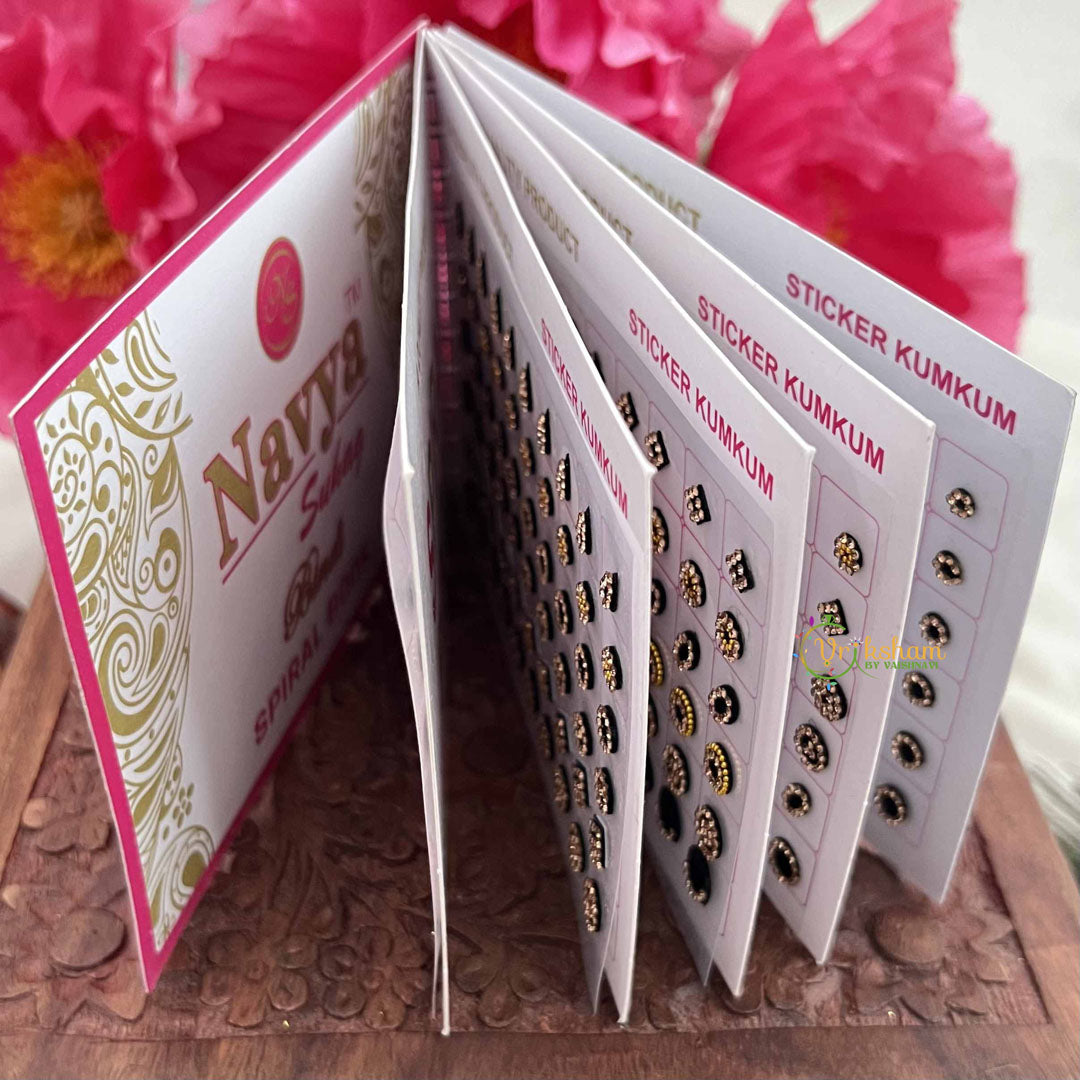 Discover bold elegance with the Vriksham Navya Suhag Spiral Bindi Book, presenting 30 striking fancy designs in sophisticated black adorned with luminous LCT stones. The dramatic contrast between the deep black base and sparkling stone embellishments creates a captivating, contemporary aesthetic. Each bindi is expertly crafted to deliver exceptional durability while maintaining its lustrous finish throughout the day. Perfect for evening events, celebrations, and those seeking to make a distinctive statement, this collection merges traditional artistry with modern sensibility. The spiral-bound format ensures convenient access to your preferred style. Ideal for individuals who appreciate bold sophistication and desire bindis that reflect their refined, fashion-forward approach to beauty.