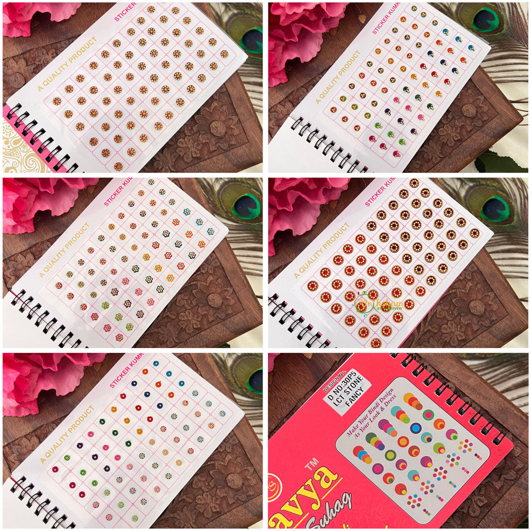 Experience refined elegance with the Vriksham Navya Suhag Spiral Bindi Book, showcasing 30 stunning fancy designs embellished with radiant LCT stones. Each bindi is expertly crafted with meticulous stone placement that creates a captivating luminous effect, perfect for elevating your appearance at celebrations and special events. The premium quality ensures lasting brilliance and durability, with stones that maintain their sparkle without fading. The spiral-bound collection allows for convenient browsing and selection of your preferred style. Ideal for those who appreciate ornate craftsmanship and desire to express their refined taste through jewel-adorned bindis. These pieces celebrate timeless beauty with