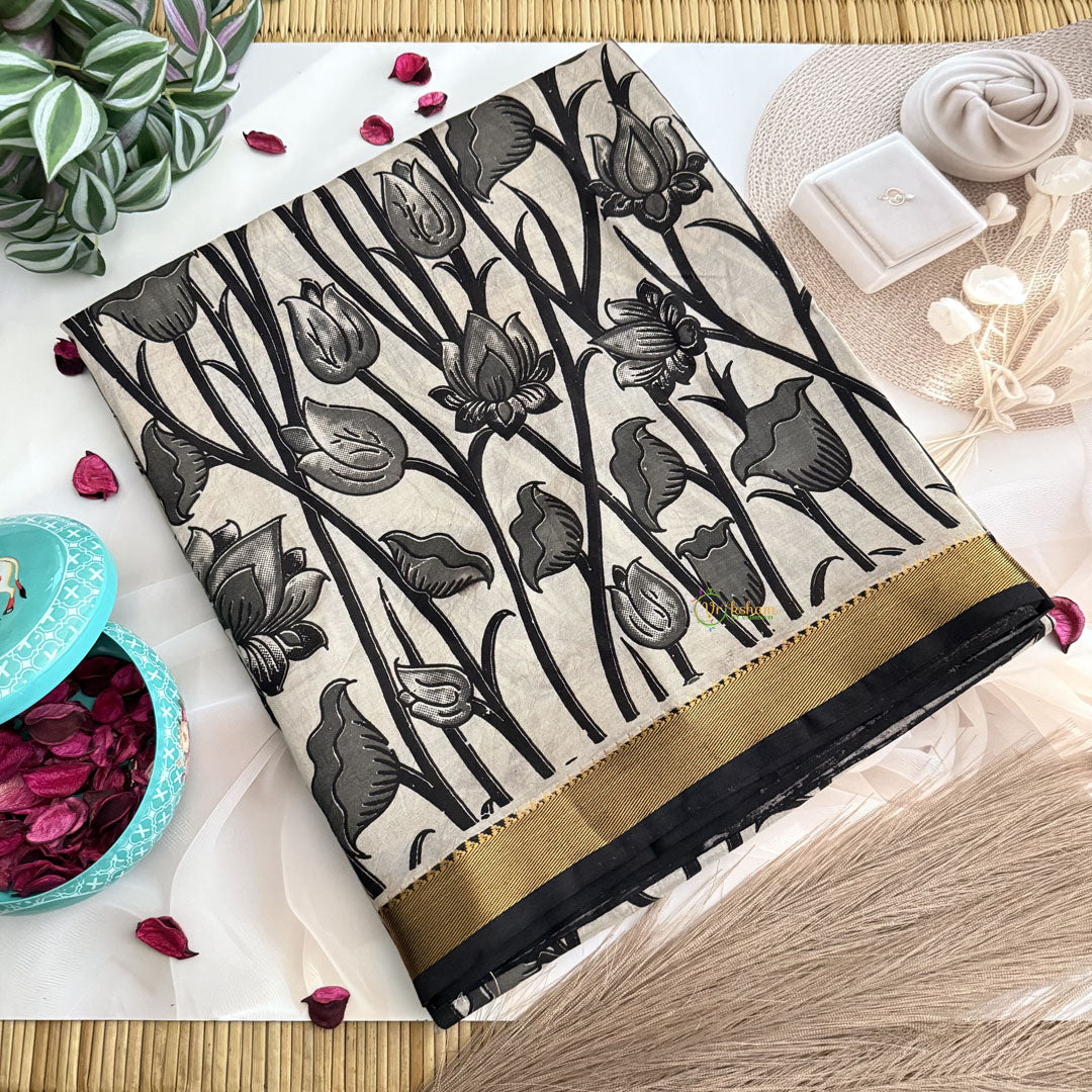 Vriksham Off White Black Floral Kalamkari Saree With Nizam Border-VS4676