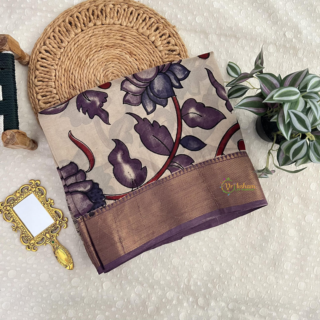 Material: Kalamkari Chennur Silk Saree with Lavender Border