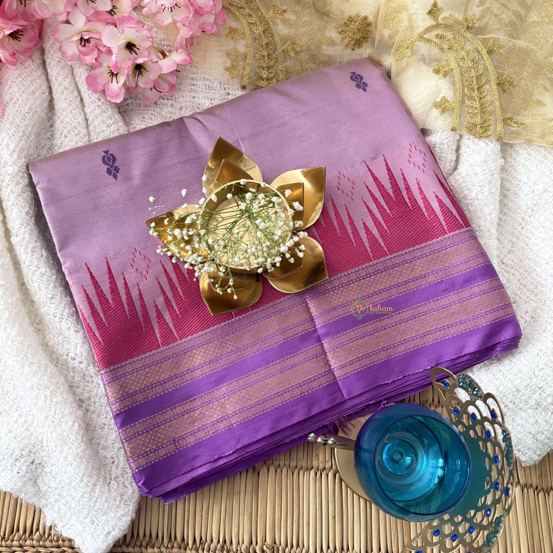 Vriksham Onion Pink Chinnalampattu Saree Rettapet Copper Temple Border-The Vriksham Onion Pink Chinnalampattu Saree features a delicate onion pink shade enhanced by a traditional Rettapet copper temple border, offering a perfect blend of elegance and cultural charm.with blouse