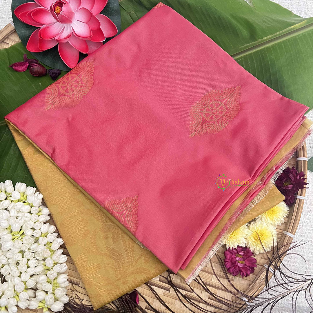 Experience refined elegance with this exquisite semi-soft silk saree in soft onion pink, complemented by a luminous golden yellow border that captures timeless sophistication. The striking color interplay showcases authentic traditional craftsmanship and masterful weaving heritage. Perfect for those seeking distinctive style, this saree transitions seamlessly from festive celebrations to refined social gatherings with graceful ease. The premium semi-soft silk fabric offers a luxurious drape with remarkable resilience, maintaining its pristine appearance through regular wear. A distinguished choice that celebrates cultural authenticity while embracing contemporary aesthetic sensibilities with understated confidence and enduring appeal.