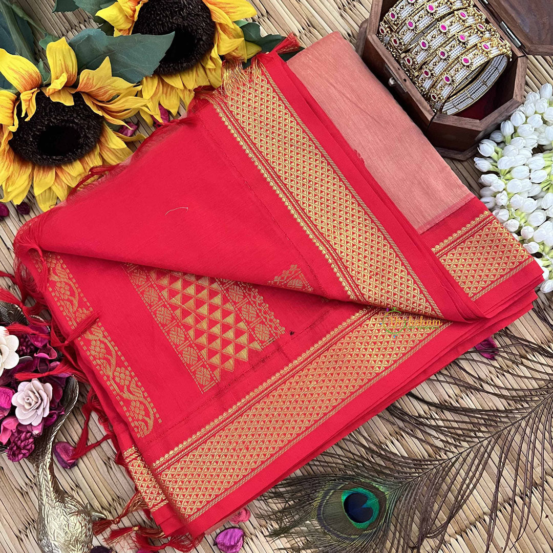 Celebrate vibrant elegance with this stunning Kalyani cotton saree, showcasing a warm orange palette accented by a rich red border and ornate butta patterning. Woven from premium Kalyani cotton, the fabric provides exceptional comfort and breathability, ideal for all-day wear and warm climates. The harmonious blend of golden orange and deep crimson creates a festive yet refined aesthetic, perfect for celebrations, weddings, and special occasions. The traditional butta design showcases meticulous craftsmanship and authentic Indian textile artistry, adding visual richness to the piece. Natural Kalyani cotton guarantees superior drape, durability, and easy maintenance. This versatile saree appeals to the confident we