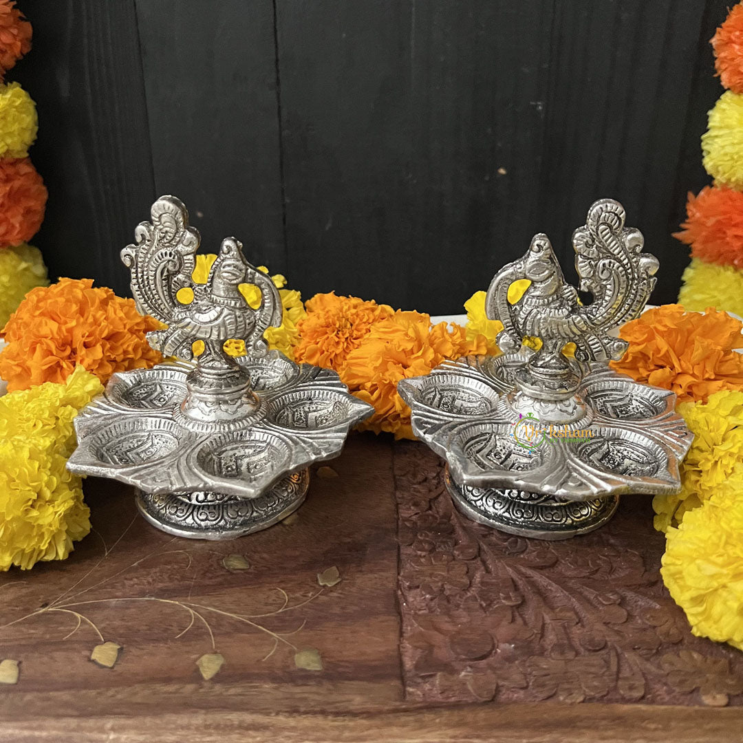 Elevate your festive décor with the Vriksham Oxidized German Silver Traditional Small Diya Set. Crafted with intricate detailing, this set of two small diyas combines timeless elegance with cultural heritage. Perfect for adding a warm, inviting glow to your celebrations, these diyas bring a refined touch to any setting while honoring traditional craftsmanship.