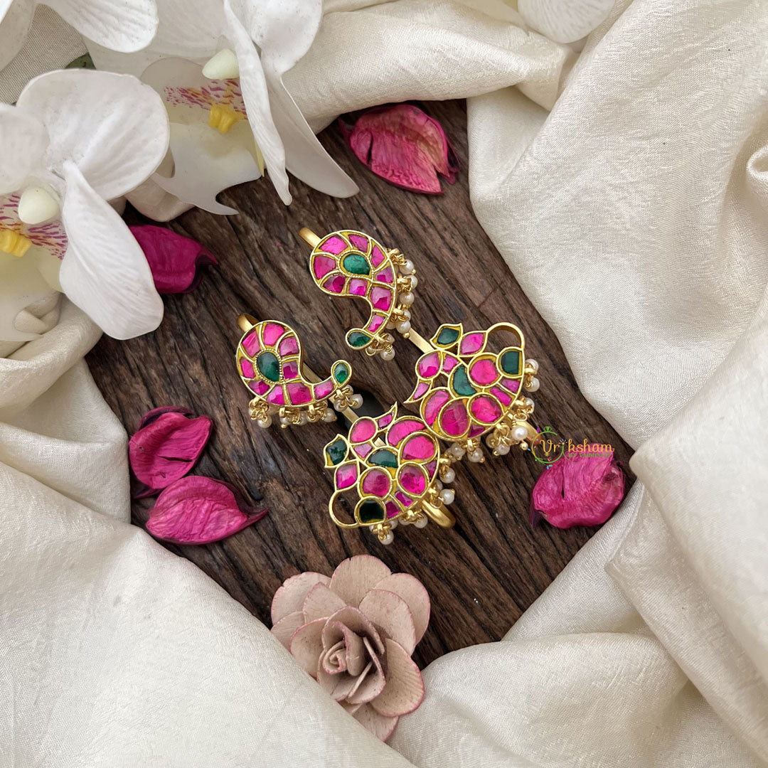 Elevate your elegance with the Vriksham Paisley Kemp Ear Cuffs adorned with lustrous pearls. These intricately designed ear cuffs blend traditional motifs with a refined finish, enhancing your look with a touch of timeless sophistication. Perfect for both special occasions and graceful everyday wear, they offer a unique statement without the need for piercings.