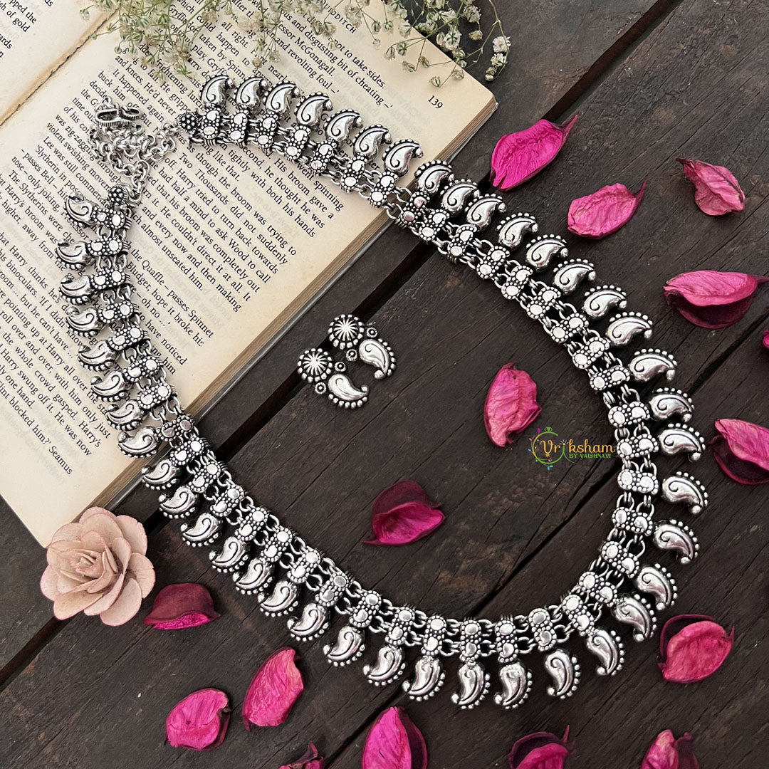 Vriksham Paisley Statement Jewelry Oxidized Silver Long Haram-S966
