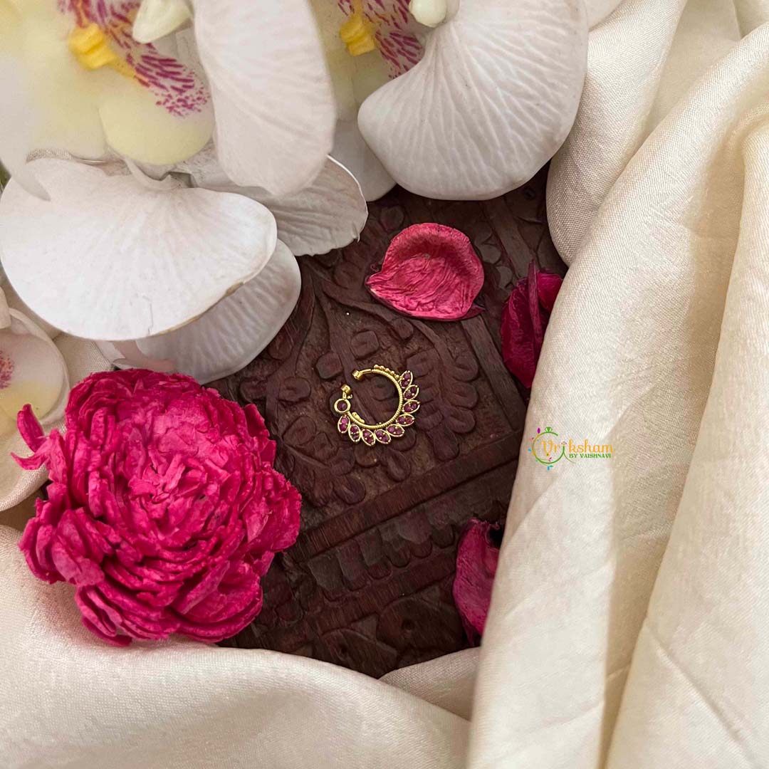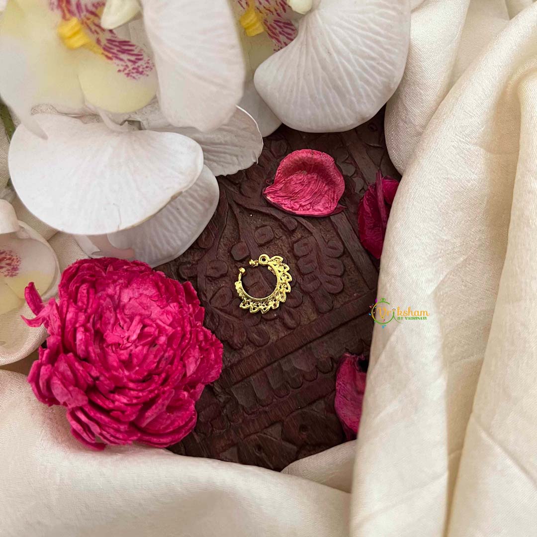 Golden Naths/Nose ring for Non - Pierced Nose. People who do not have piercing do not have to worry about not being able to wear naths. These nose rings helps people with non pierced nose also wear the same with a screw like holding. The moment you see the nath you will be able to understand how it will sit on the nose.