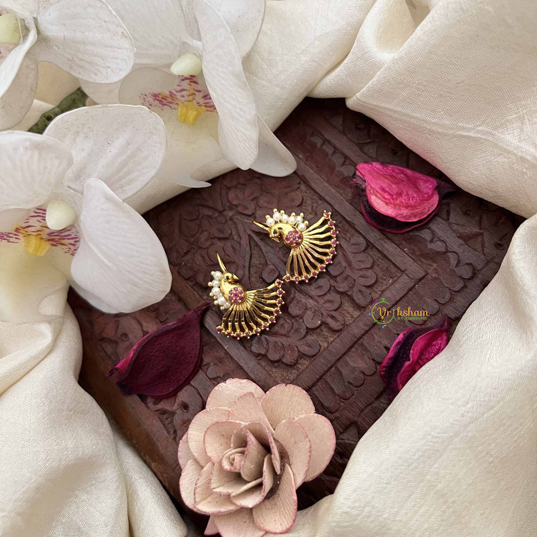 Discover the allure of this magnificent peacock-inspired Bugadi, where artistry meets tradition. Embellished with lustrous pearls arranged in an elegant feather motif, this red and green ensemble captures the majestic beauty of Indian heritage. The harmonious color combination and intricate pearl detailing create a captivating visual narrative perfect for weddings, celebrations, and momentous occasions. Crafted with exceptional precision, this sophisticated piece transforms any ensemble into a statement of refined elegance and cultural pride.